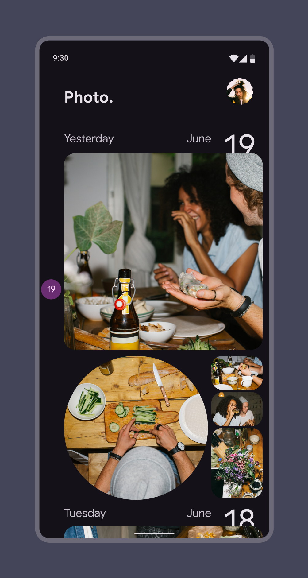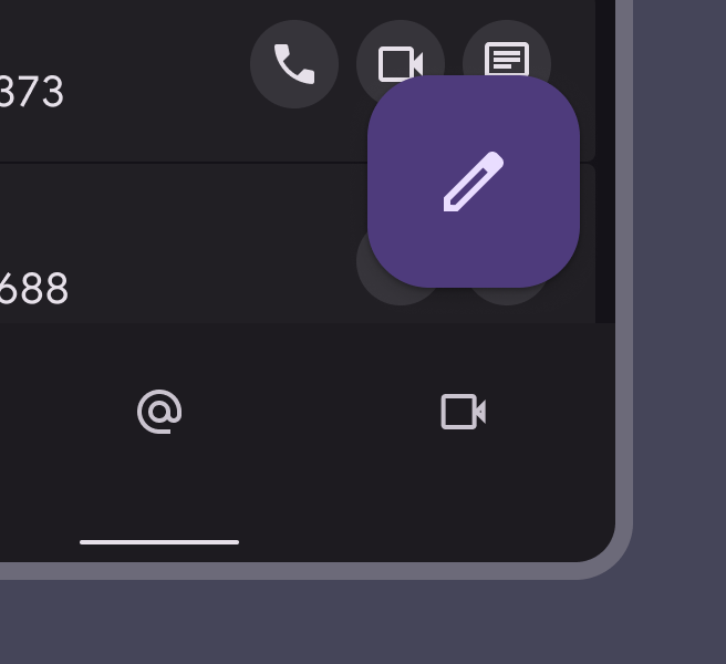 FAB 可以變化形態以啟動相關操作。當螢幕布局發生變化時,FAB 應該在轉換過程中消失並重新出現。