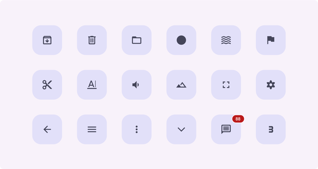 - FAB(浮動操作按鈕)是用來完成最重要操作的按鈕,一般放在螢幕的上方或下方。