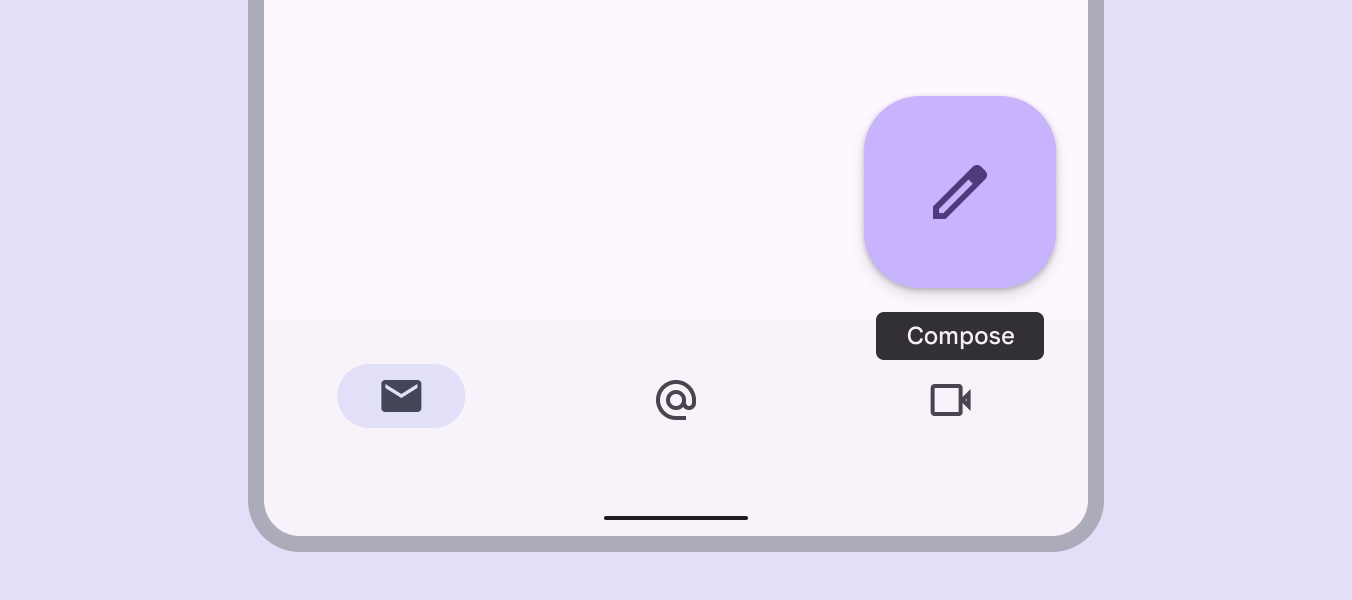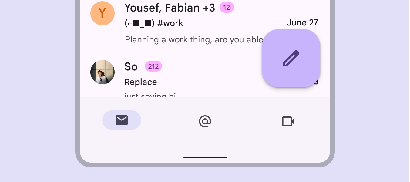 單一 FAB:單個 FAB 適用於提供一個主要操作,例如“撰寫訊息”或“新增專案”。