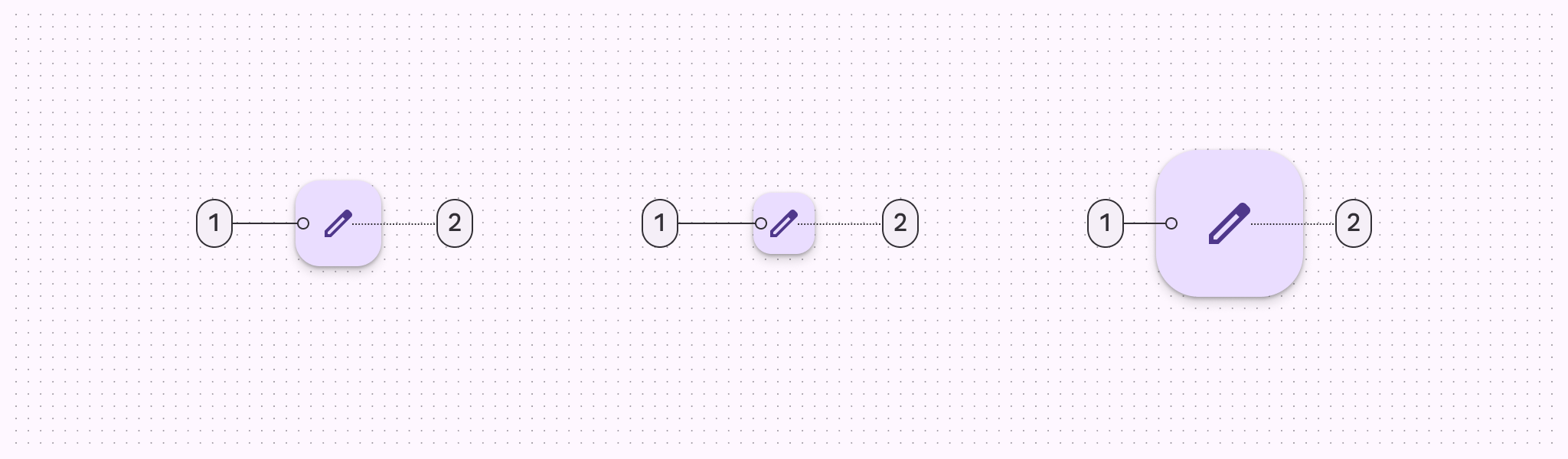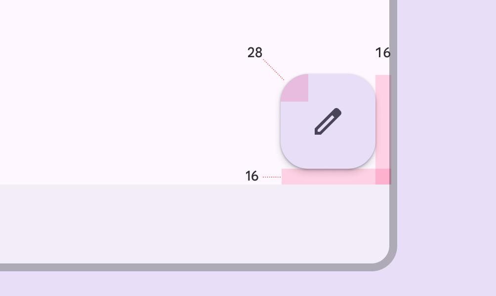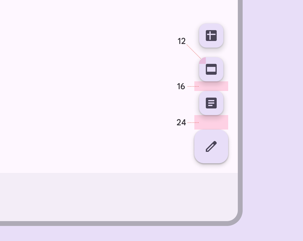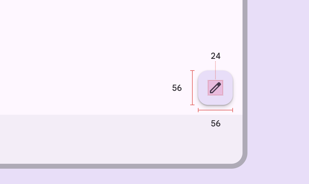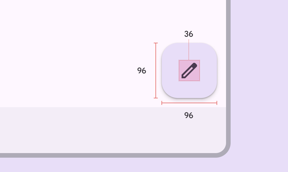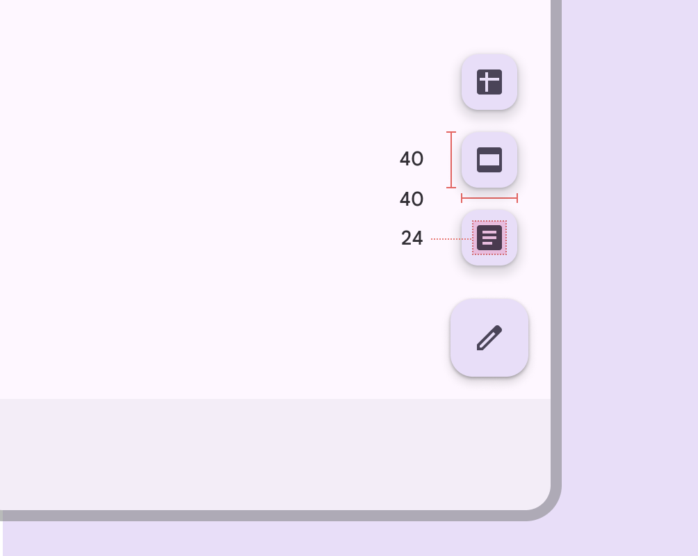 - FAB 共有三種尺寸:小型 FAB、標準 FAB、大型 FAB。