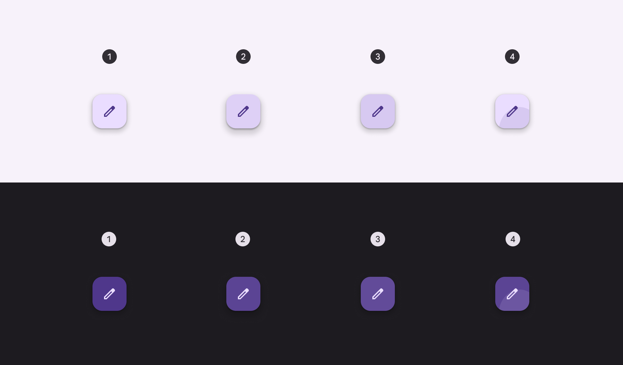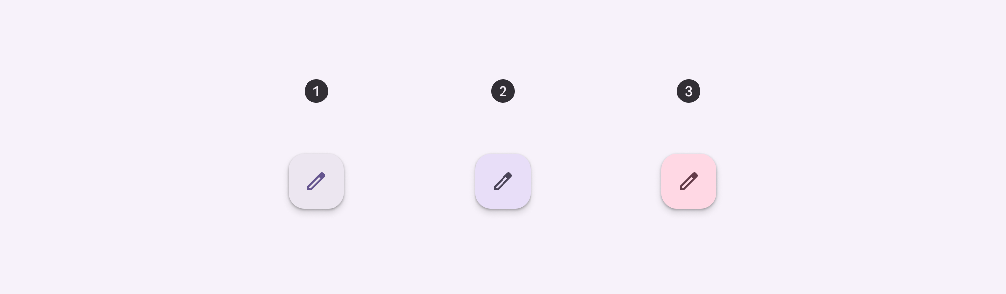 FAB 可以使用不同的顏色設計。系統提供了三種基本顏色選項:預設顏色、輔助顏色和自定義顏色。