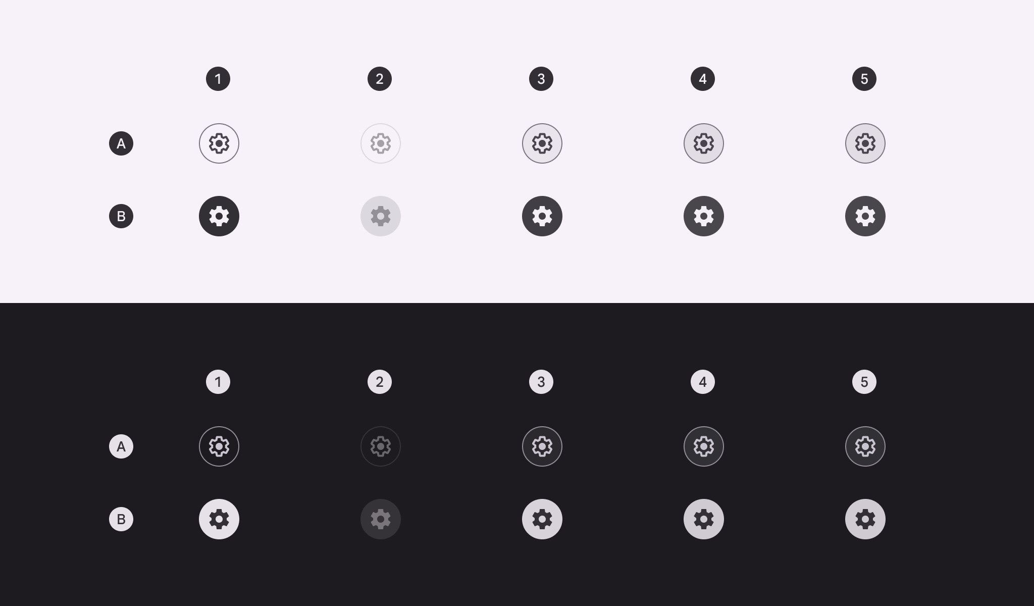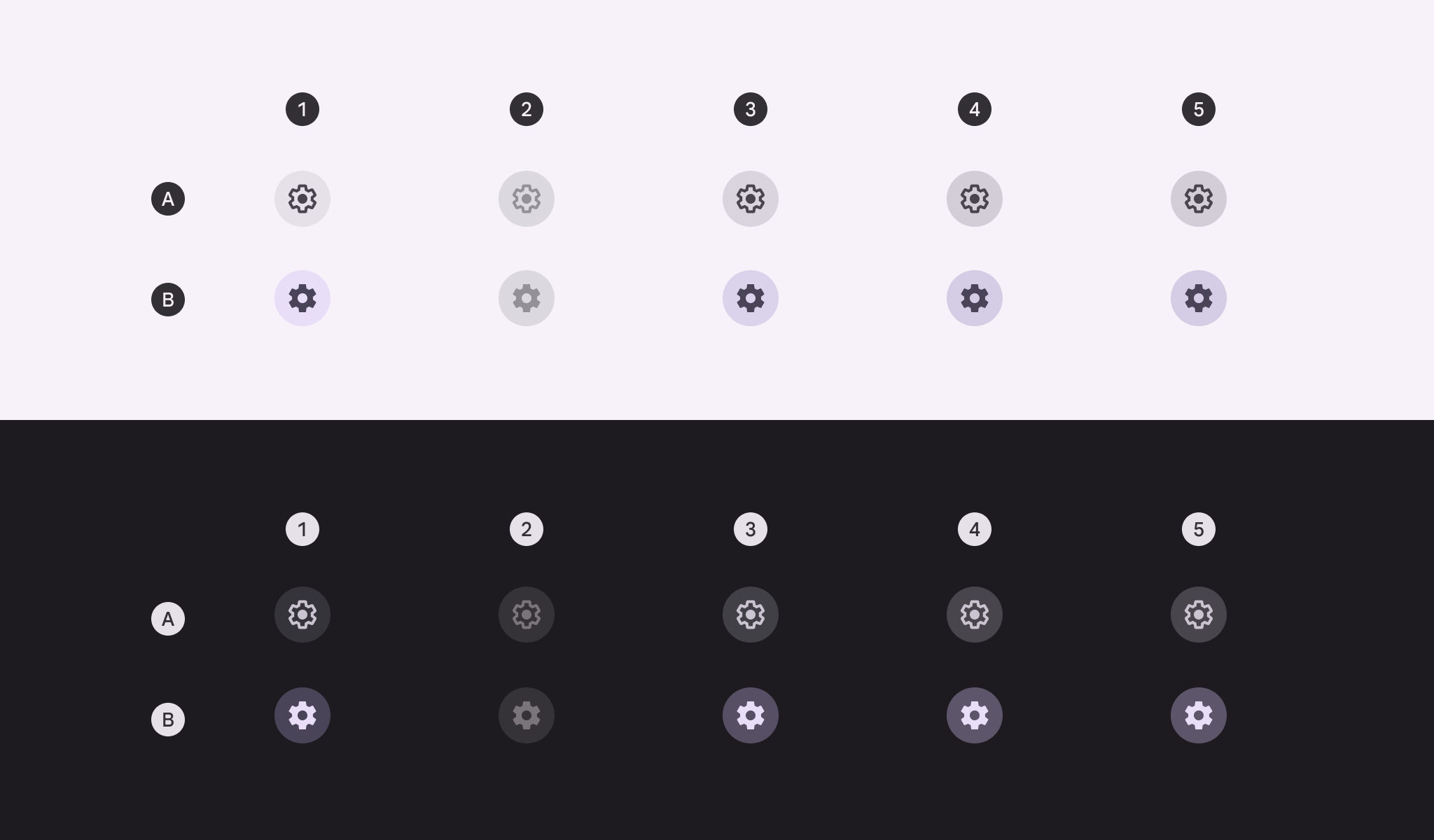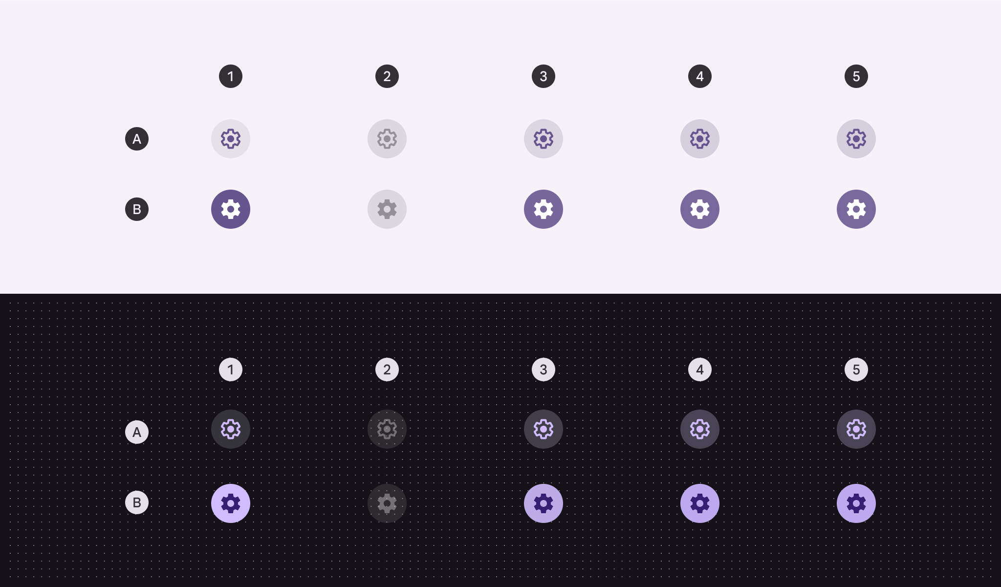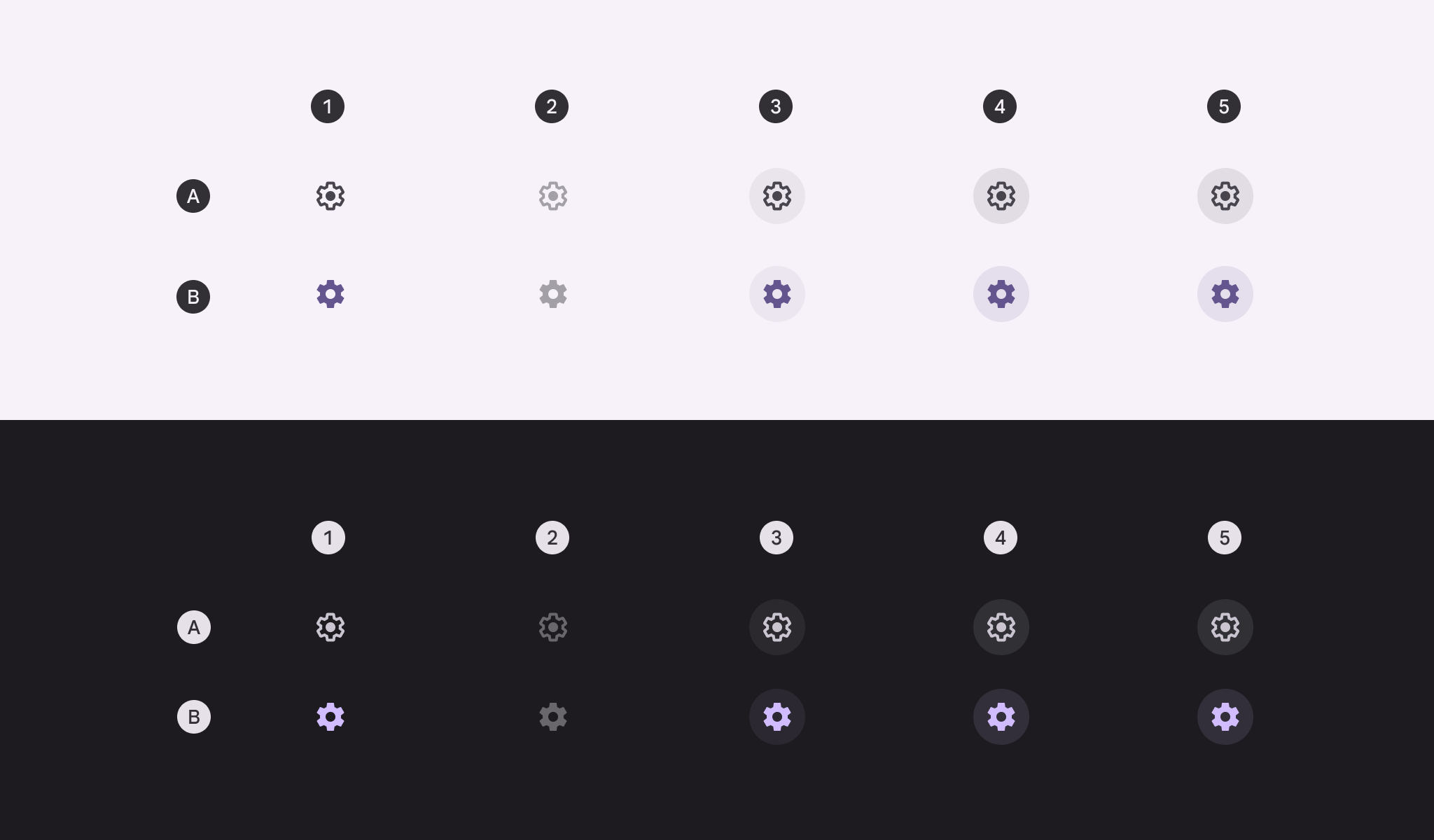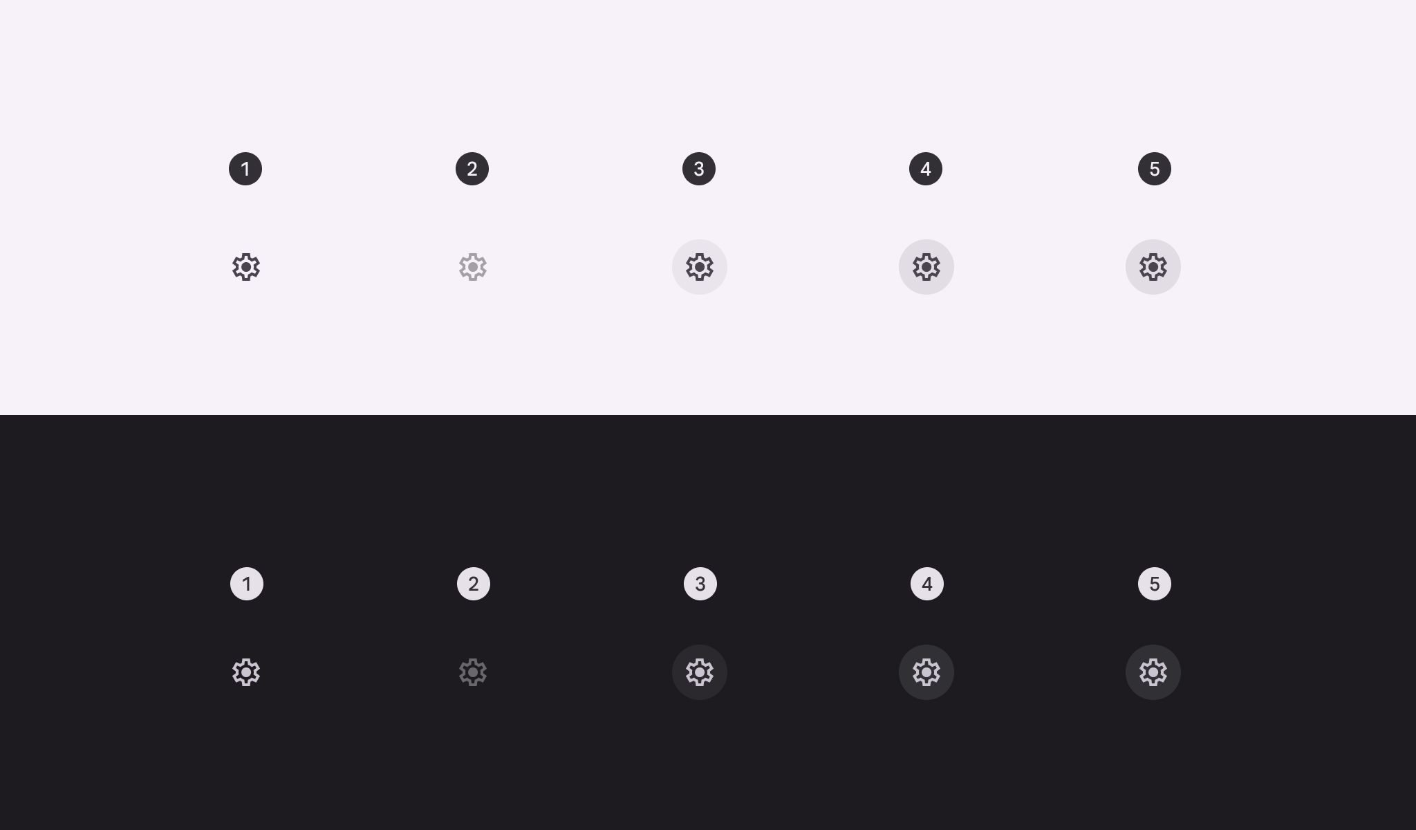 Filled tonal icon button states填充色調圖示按鈕狀態