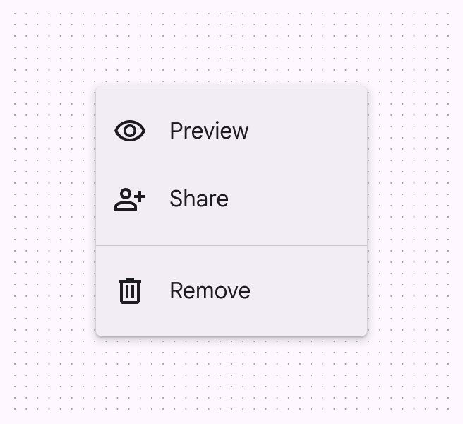當使用者點選互動元素(如圖示、按鈕或操作)或內容(如選中的專案或文字)時,會出現一個選單。