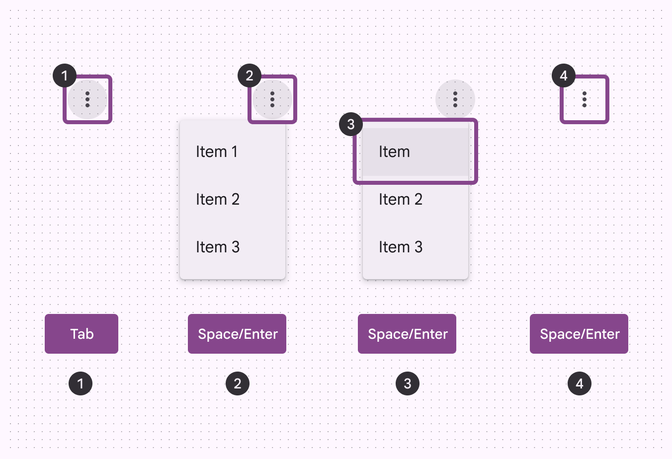 選單在螢幕上的位置會影響其出現的位置和方式。如果在螢幕頂部開啟,它會向下展開(以避免被裁剪)。選單採用淡入淡出的過渡模式進入和離開螢幕。這種動畫在選單與觸發選單的互動元素之間建立了一種聯絡。