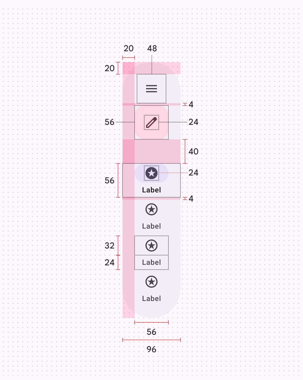 導航欄可以選擇兩種放置方式:可以直接和空間面板重疊,或者在旁邊放置並保持20dp的間距,讓視覺效果更清晰。