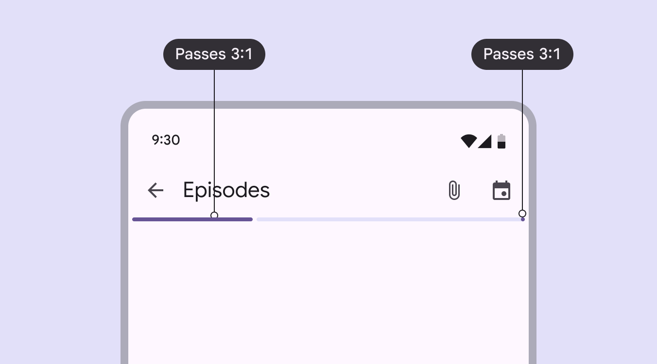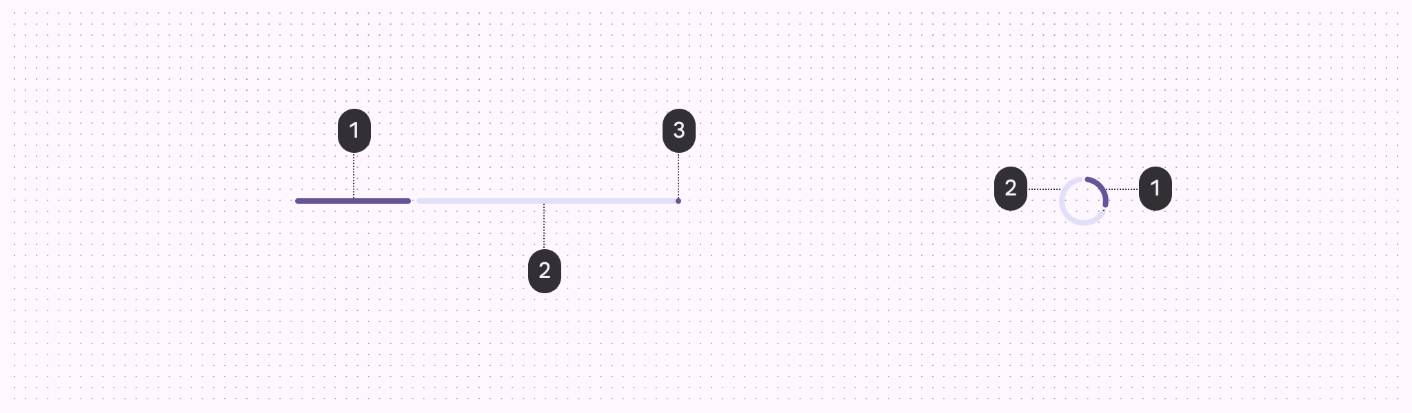 這個小圓點只用在直線型的進度條上,不會出現在圓形進度條或無確定時間的進度條上。當進度條和它所在的背景顏色太接近(對比度小於3:1)時,必須新增這個小圓點,這樣能幫助使用者更容易看清進度條。