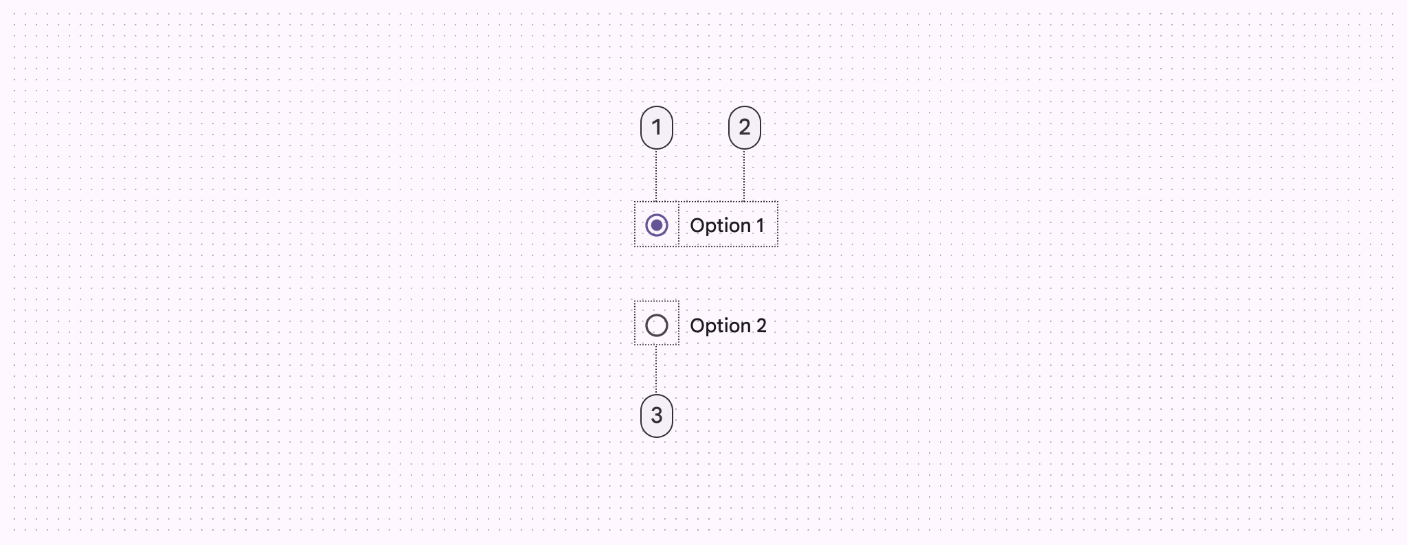 當使用者點選或觸控單選按鈕圖示或標籤時,單選按鈕即被成功選中。