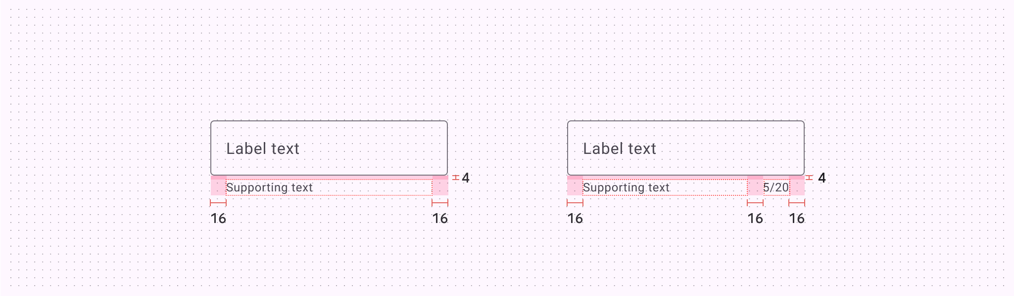 | Padding between supporting text and character counter支援文字和字元計數器之間的填充 | 16dp |