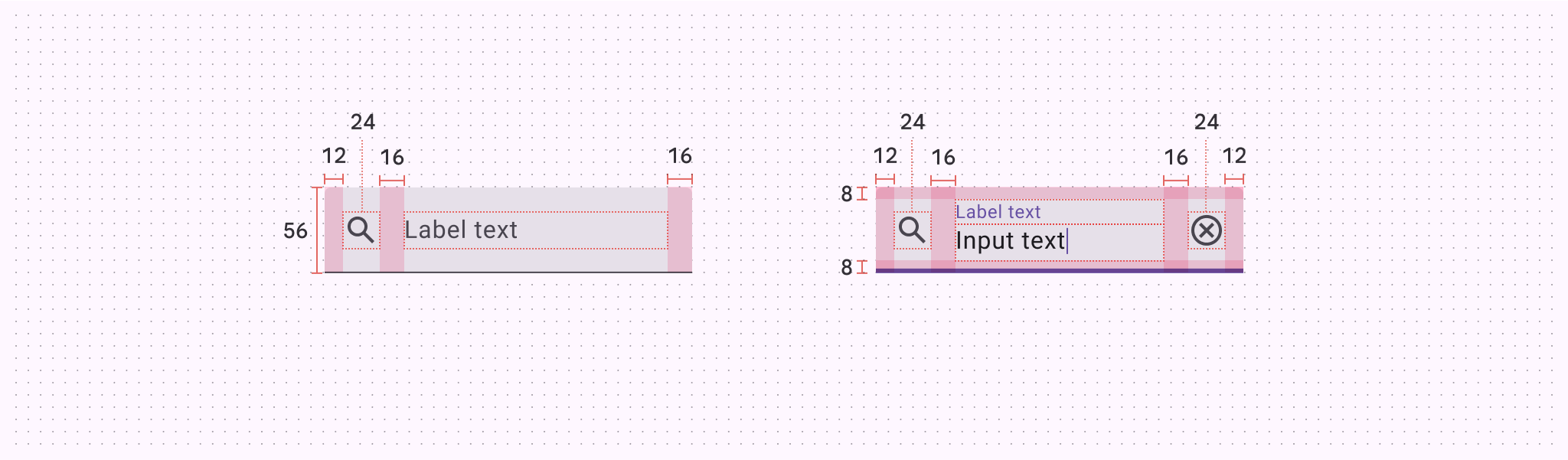 | Left/right padding populated label text左/右填充標籤文字 | 4dp |