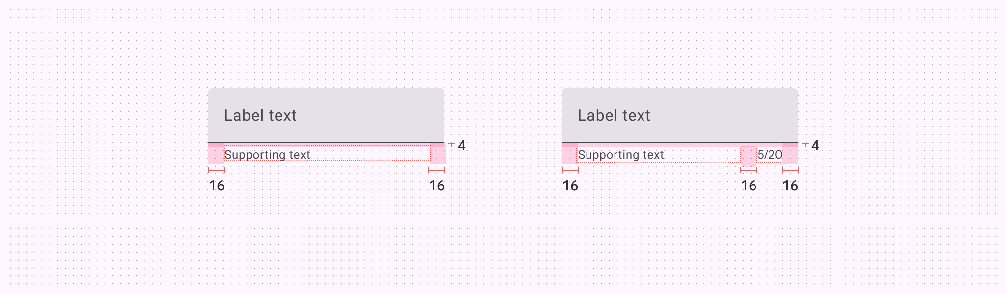 | Supporting text and character counter top padding支援文字和字元計數器頂部填充 | 4dp |