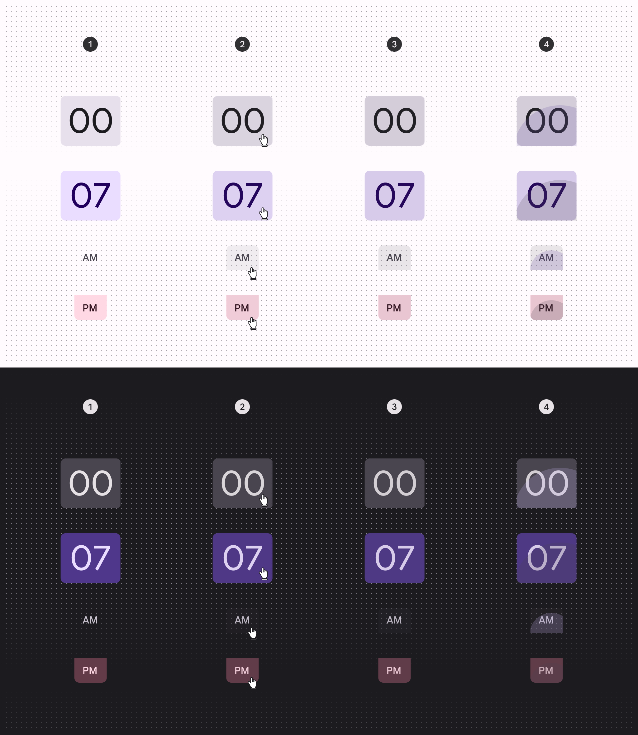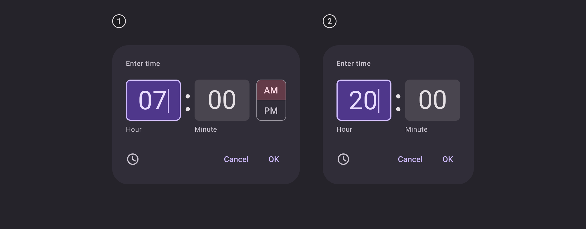 12-hour and 24-hour time picker inputs12 小時制和 24 小時制時間選擇器輸入