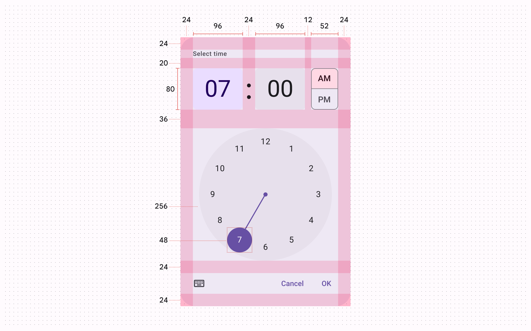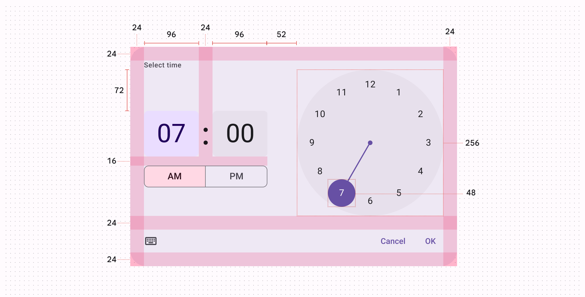 | Time selector container 時間選擇器容器 | Width 寬度 | 96dp |