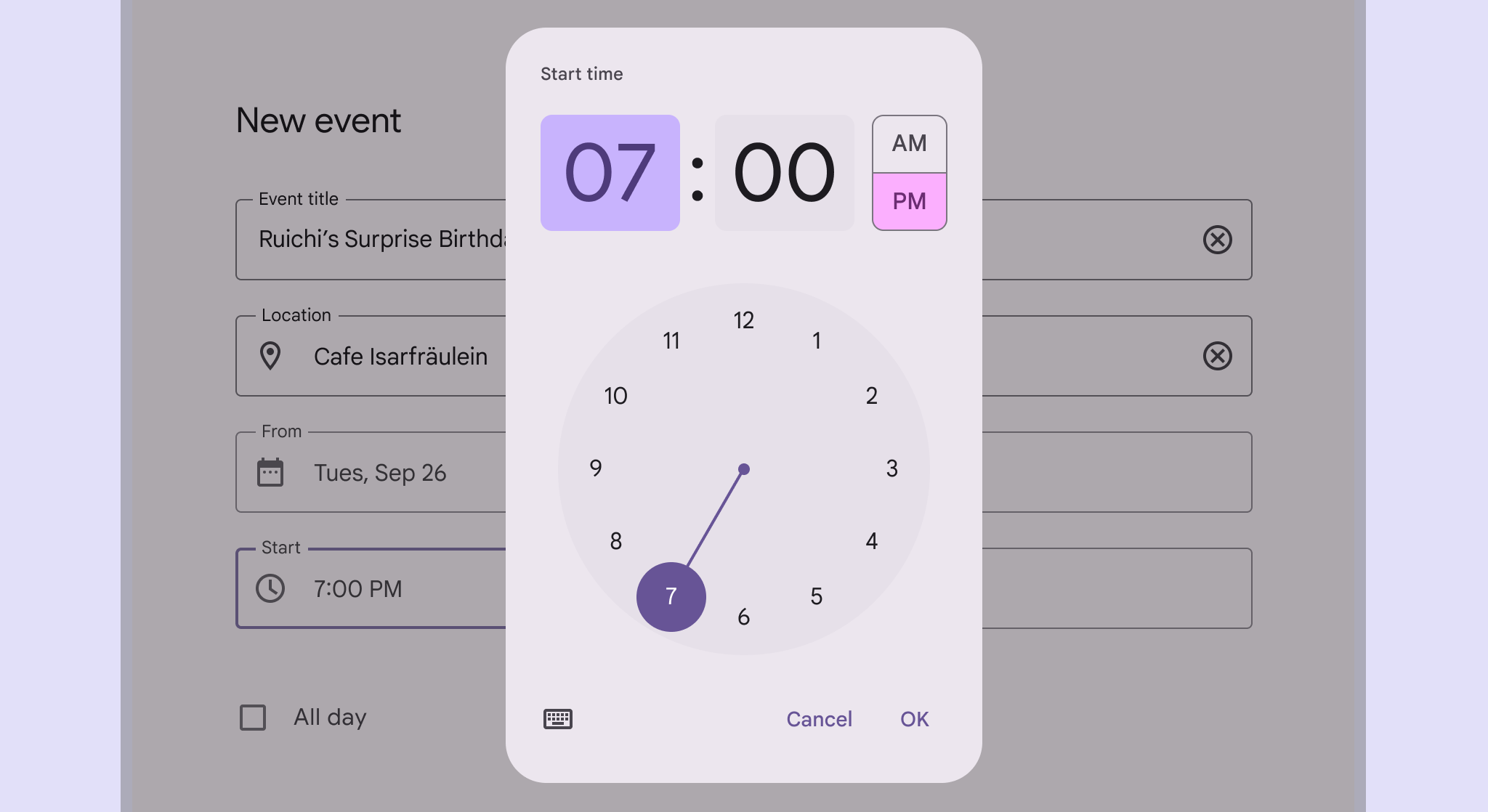 - 有兩種選擇時間的方式:時鐘表盤和直接輸入數字