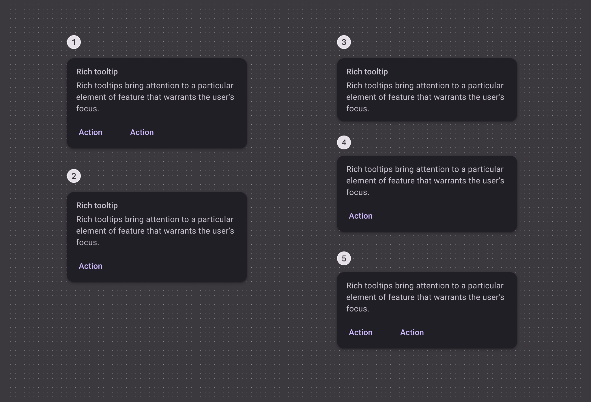 - 豐富的工具提示可包含可選的標題、連結和按鈕