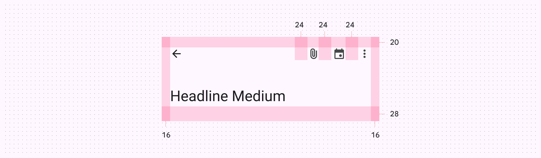 | 前/後置圖示尺寸(Leading / Trailing Icon size) | 24dp |