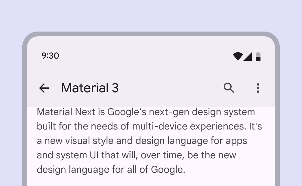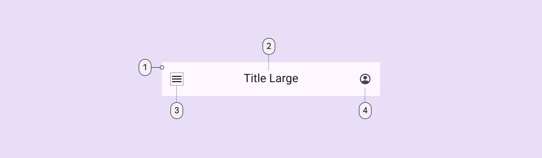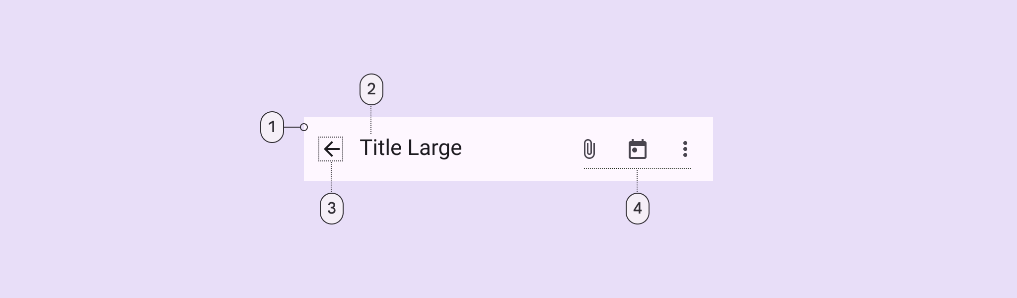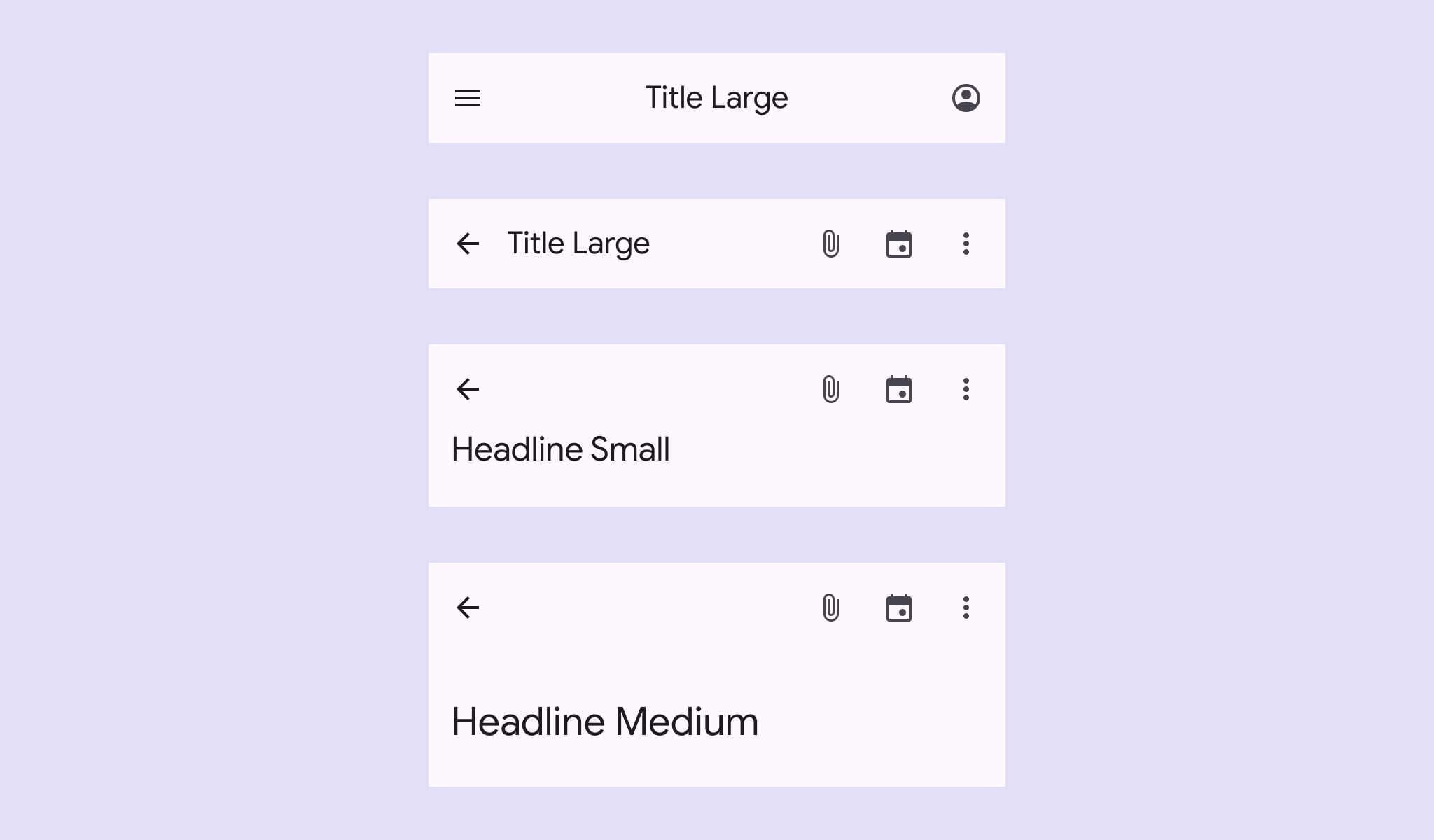 - 中型(Medium)用於初始滾動狀態的應用欄,用於展示較大的標題樣式。