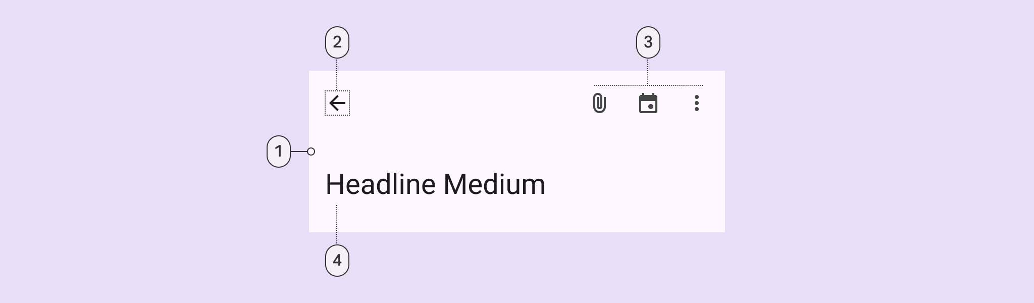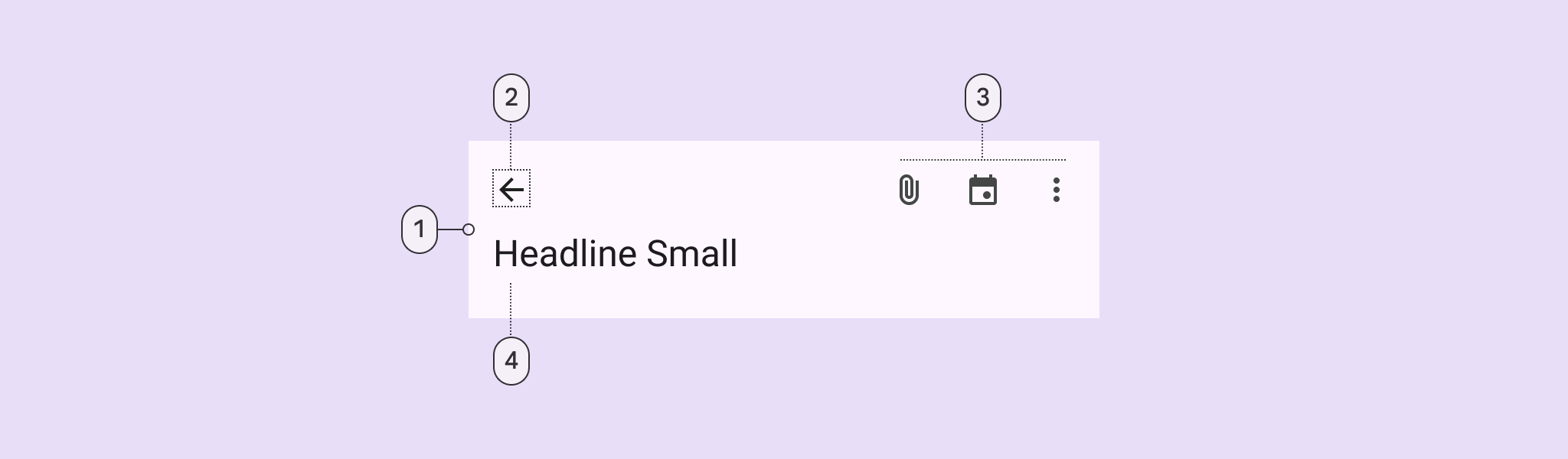 - 居中對齊(Center-Aligned):適用於主要應用頁面,用於顯示應用名稱或頁面標題。