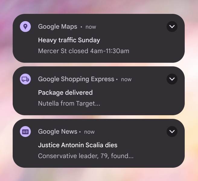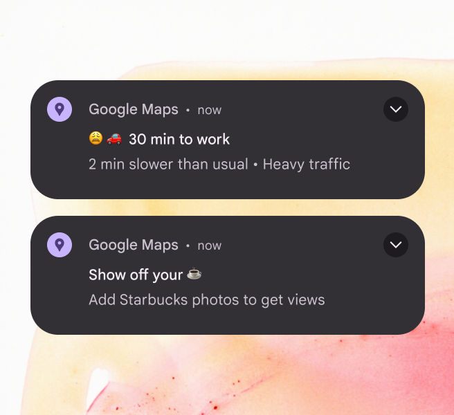 把重要資訊放在通知最前面,讓使用者一眼看到關鍵內容。額外資訊應放在後面。不要把應用名稱、通知來源放在開頭,不要以無關緊要的詞開始
