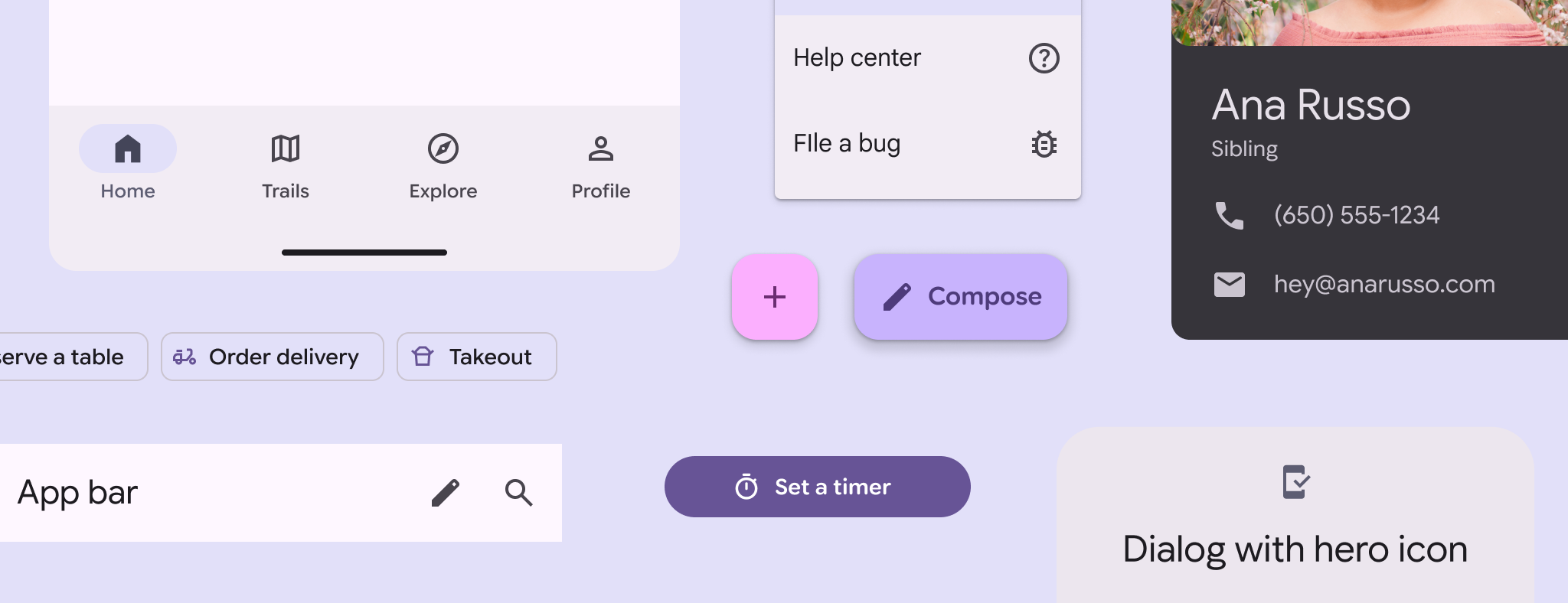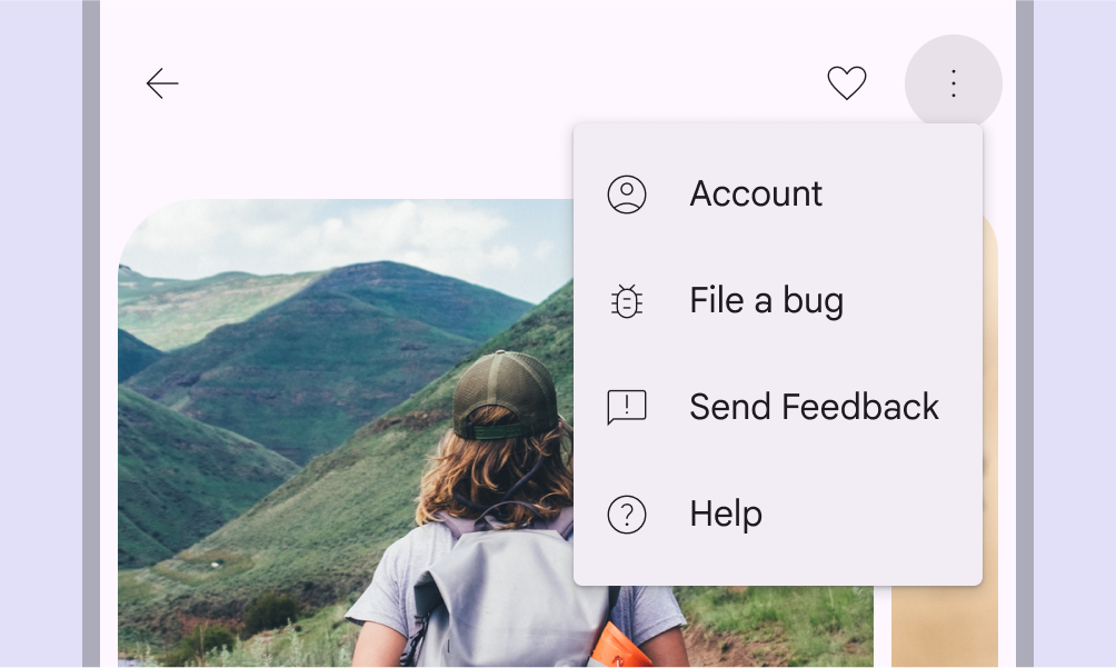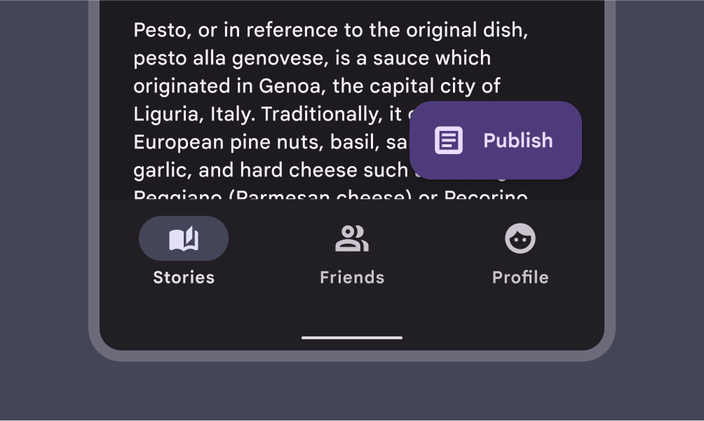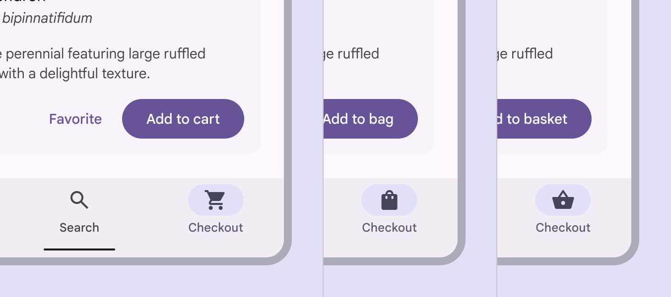 其他圖示應在其下方配有不超過 20dp(裝置獨立畫素)的文字標籤,以確保其含義清晰並保持可訪問性。這些符號包括: