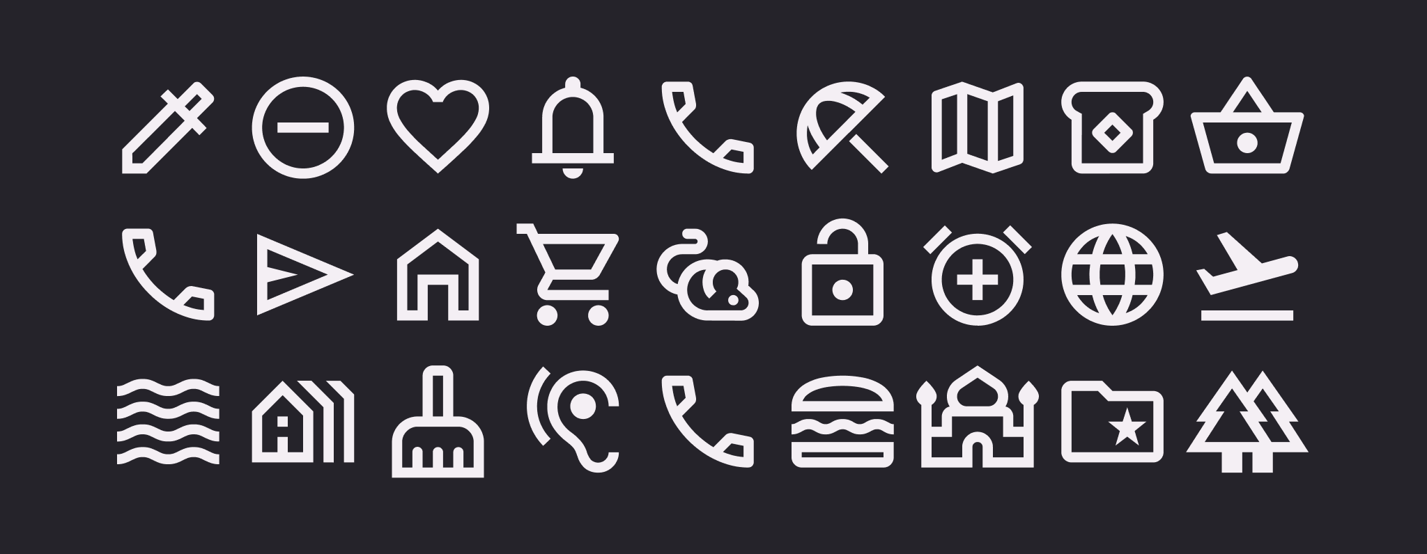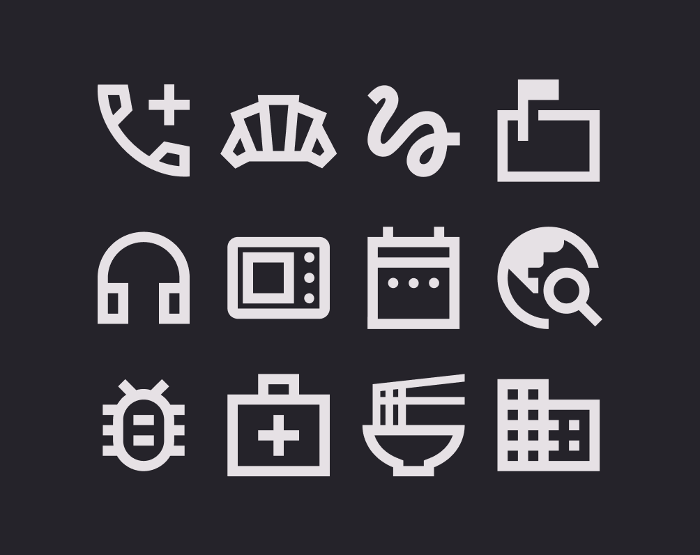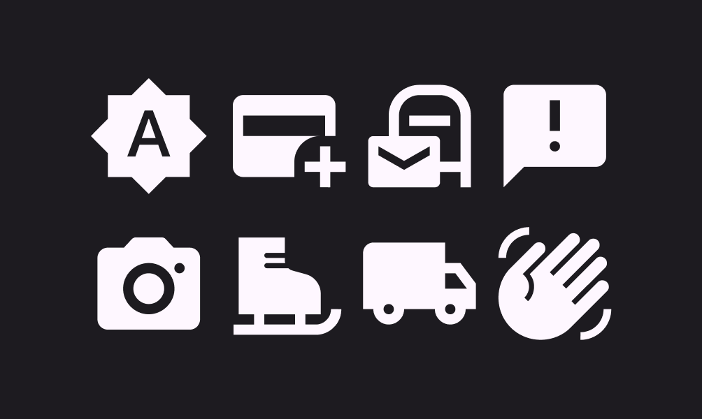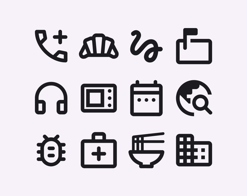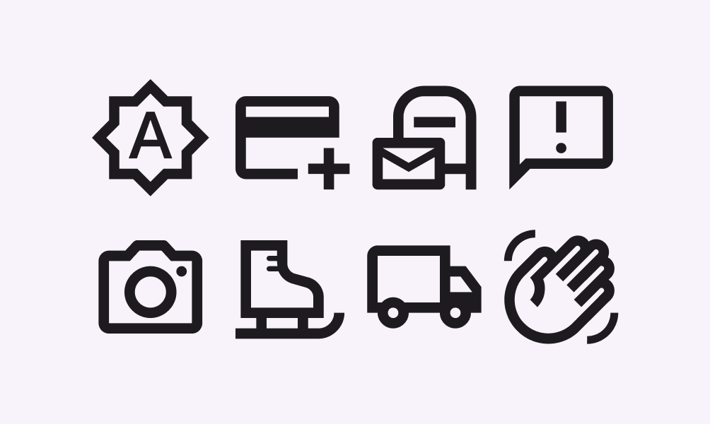 帶輪廓的符號採用描邊和填充設計,呈現輕盈簡潔的風格,適合密集介面。描邊粗細可調整,可與排版字型相配。