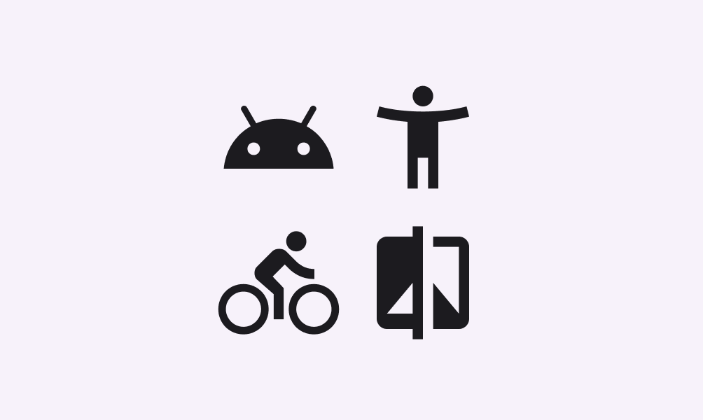 材質符號的設計考慮因素與字型類似,並且經常與文字一同出現。選擇合適的圖示集可以將介面內容緊密聯絡起來,增強產品的品牌凝聚力。
