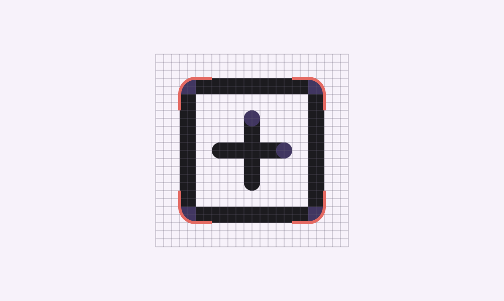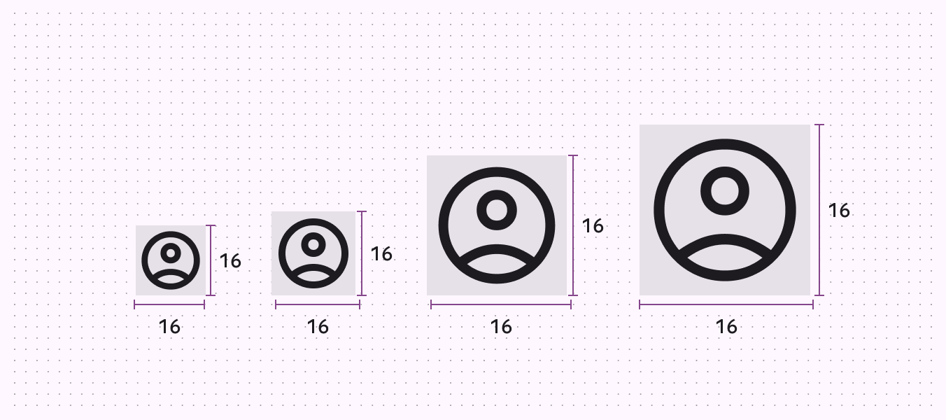 傳統上,圖示是從 24dp 的源向量進行縮放的,這導致放大後的圖示與原始圖示相比過於臃腫。透過視覺尺寸軸,在圖示尺寸增大時,你可以保持筆畫粗細(厚度)不變。