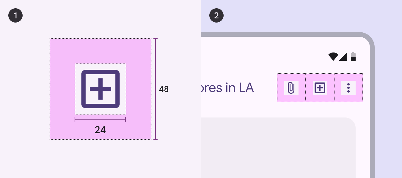 預設情況下,24dp 的符號目標大小應為 48dp。