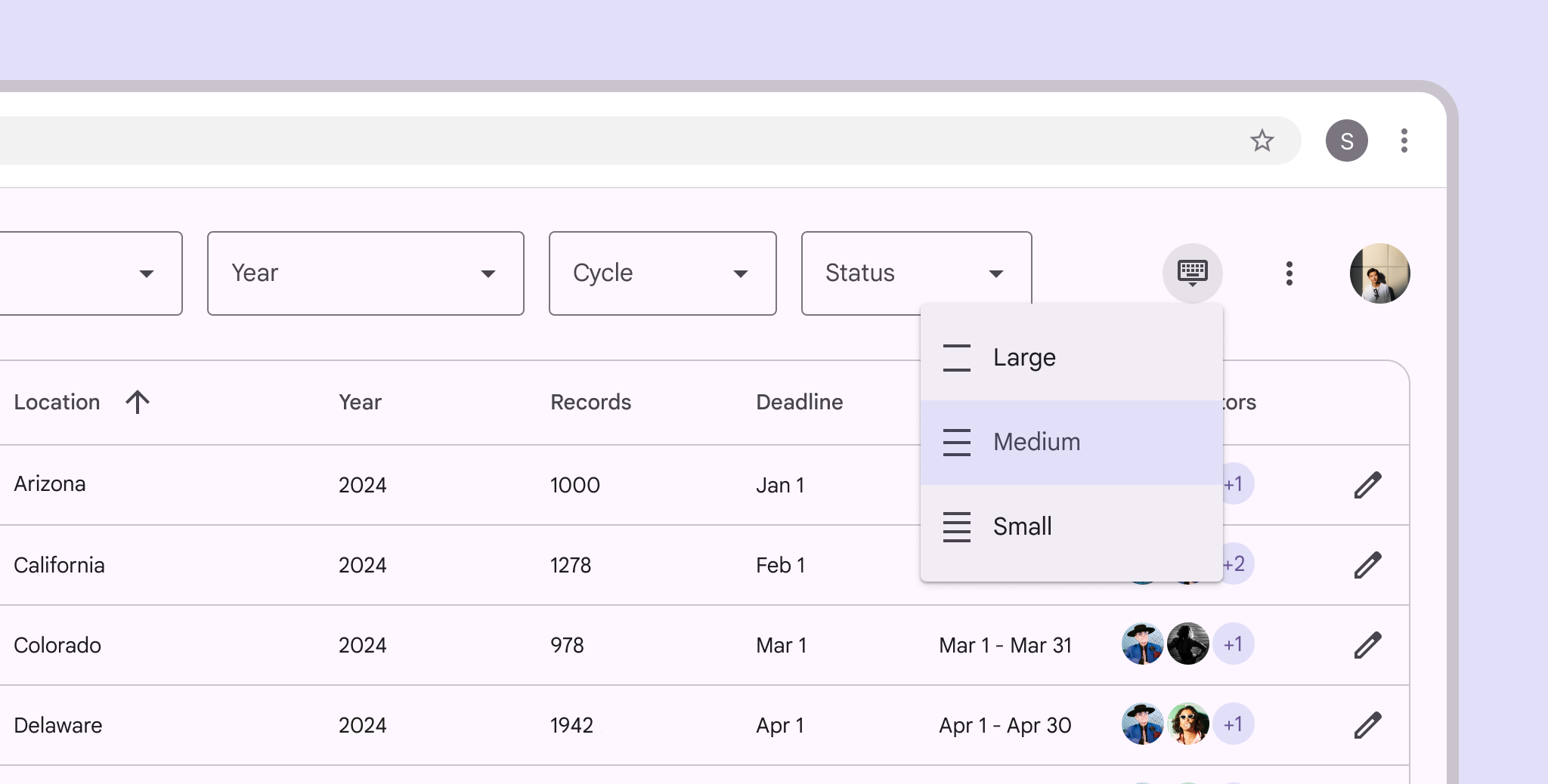 桌面端可能偏好高密度,移動端則相反。除非使用者主動更改,密度不應隨視窗或裝置方向自動變化。