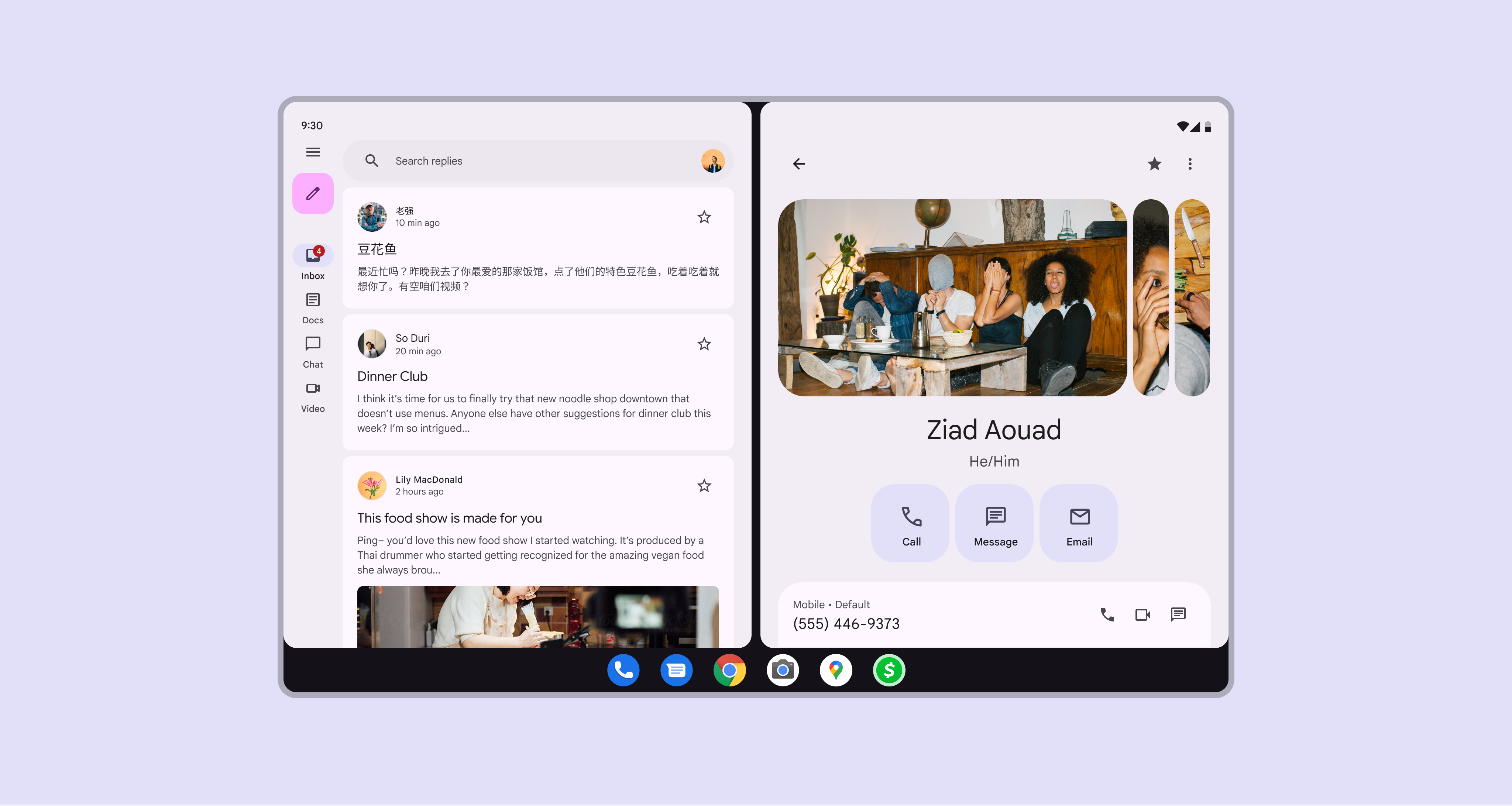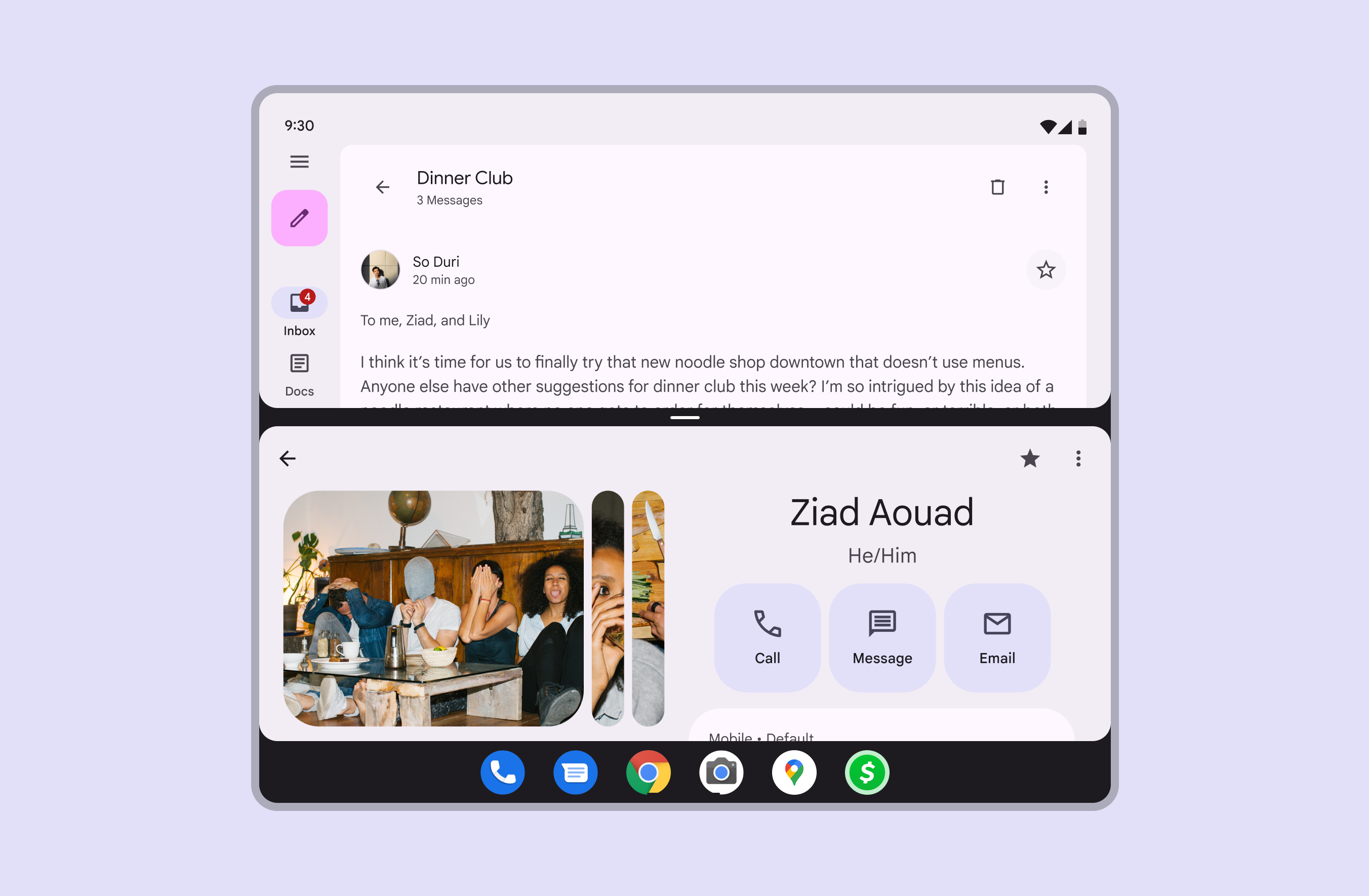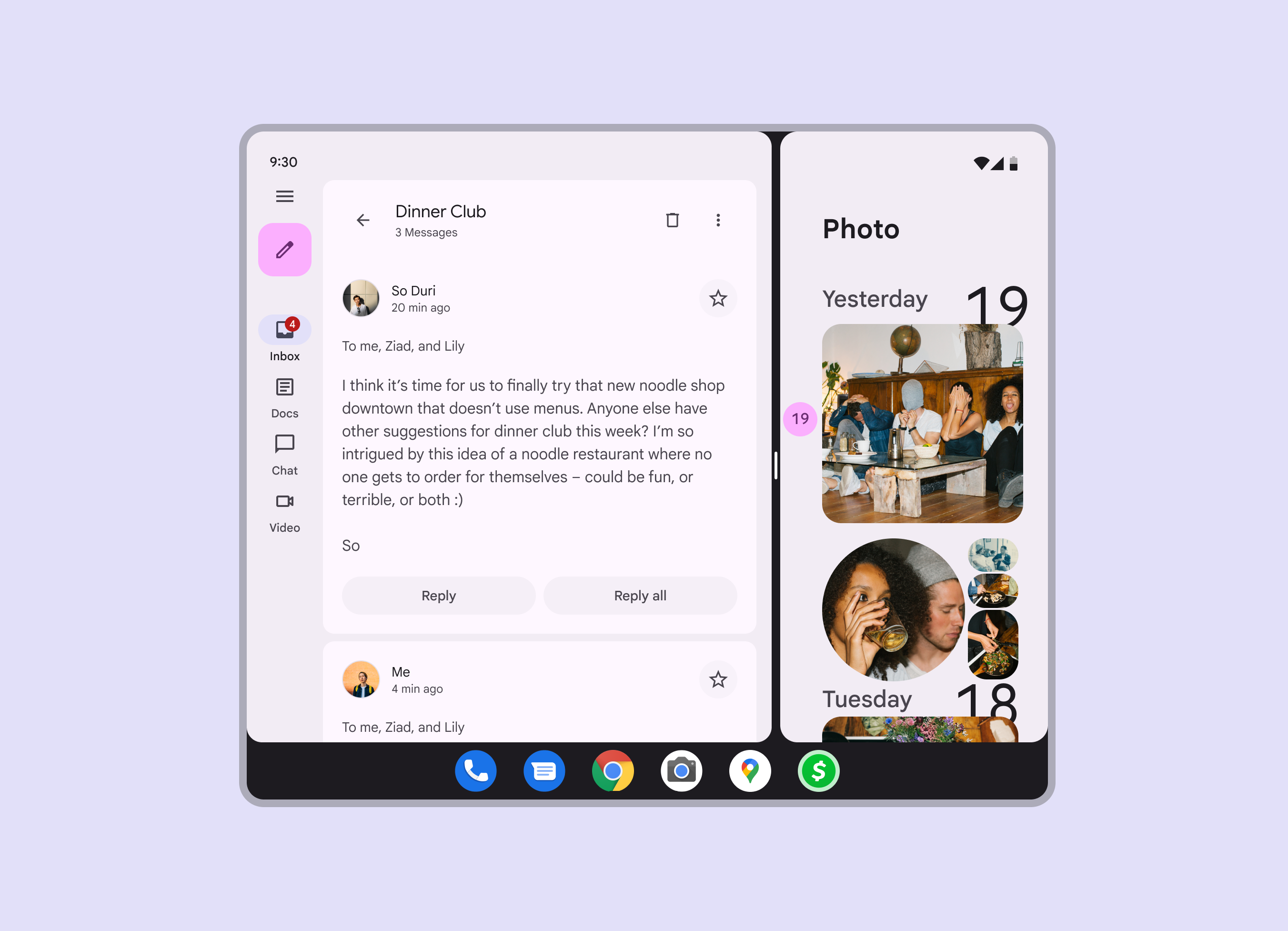 預設多視窗模式是 50/50 分屏,使用者可以調整為 1:3 或 2:3 以專注某個應用,並適應不同的螢幕大小。
