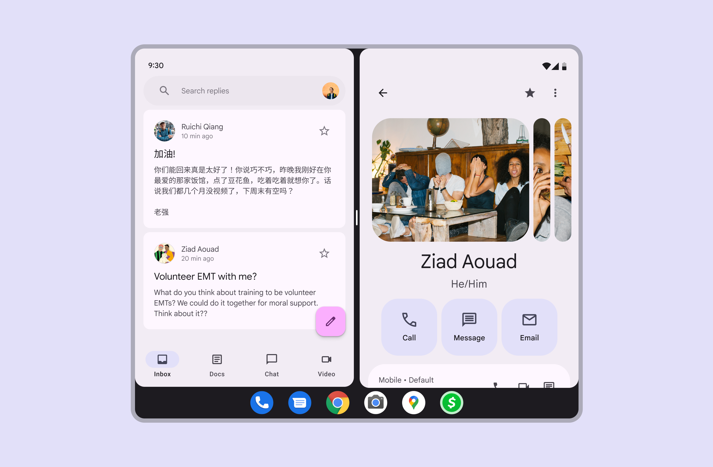 摺疊屏可以把螢幕分成兩個區域,可能是無縫的柔性摺疊,也可能是帶鉸鏈的雙屏,設計時需要考慮如何顯示內容。