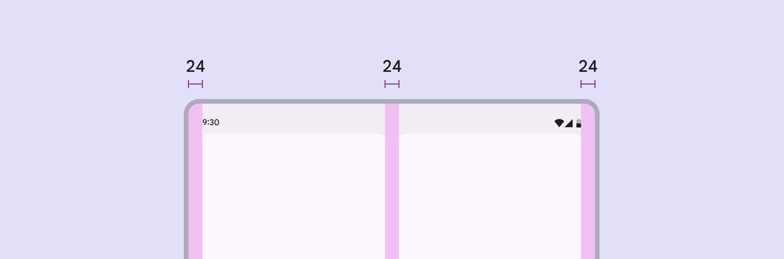 中等佈局的邊距為 24dp。面板之間的間隔也是 24dp。