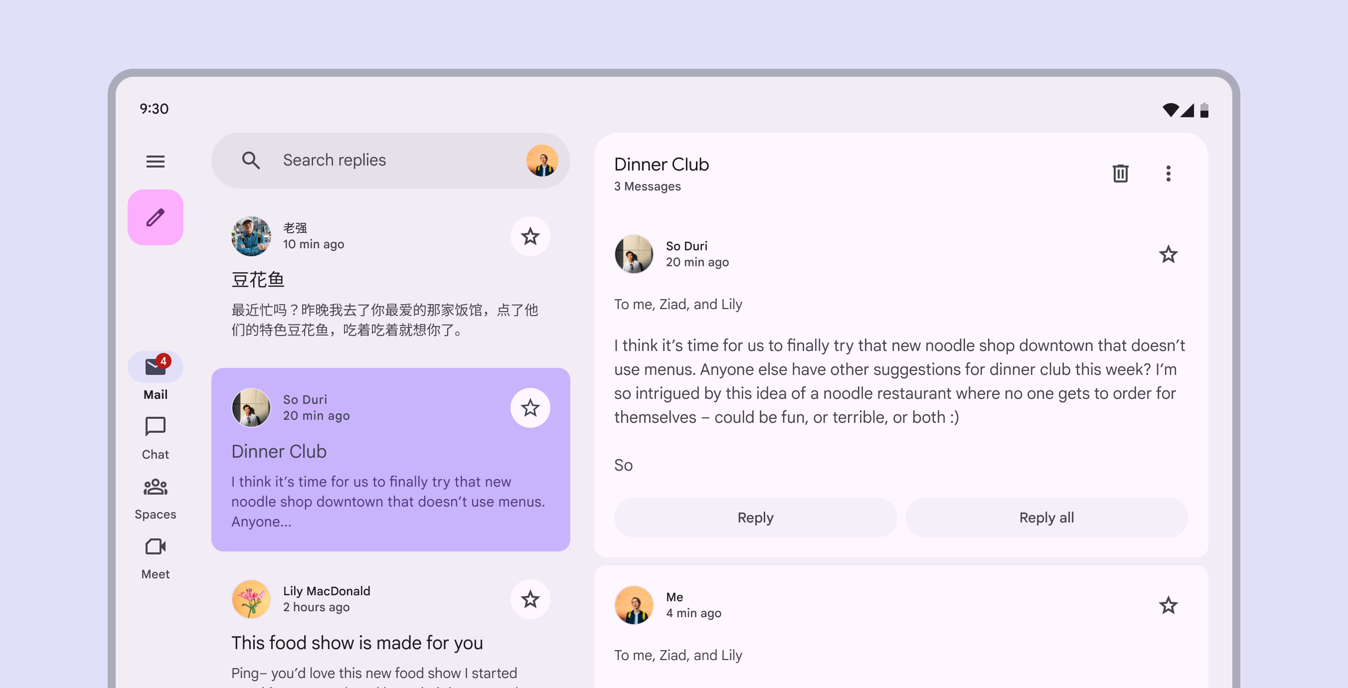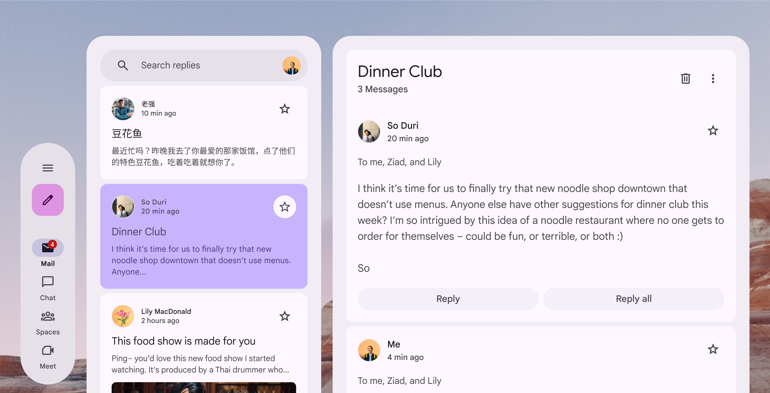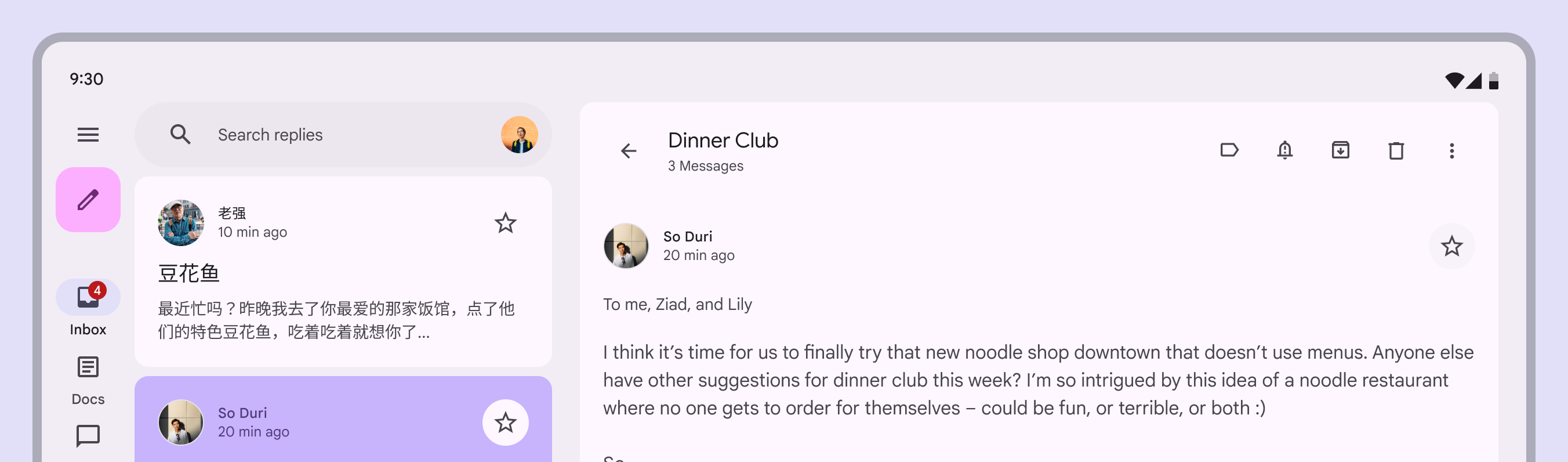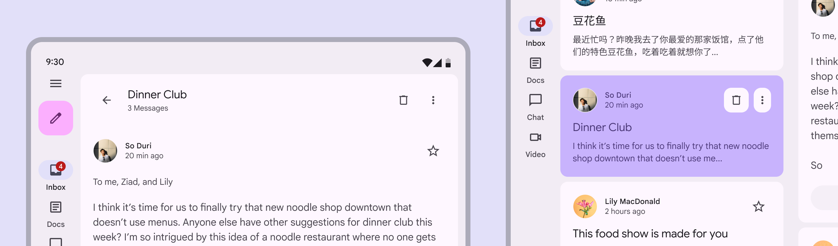 面板會根據螢幕空間自動調整佈局:空間充足時並排顯示,空間不足時會透過顯示隱藏、懸浮或重排等方式重組。面板會始終保持內容的上下文和含義。