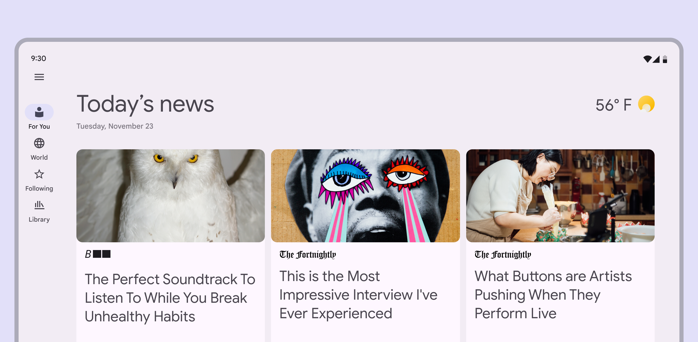 在大多數裝置上,面板可以與背景融為一體,而其他面板則可以使用不同的顏色來突出顯示。這被稱為隱式分組,有助於顯示窗格之間的關係。