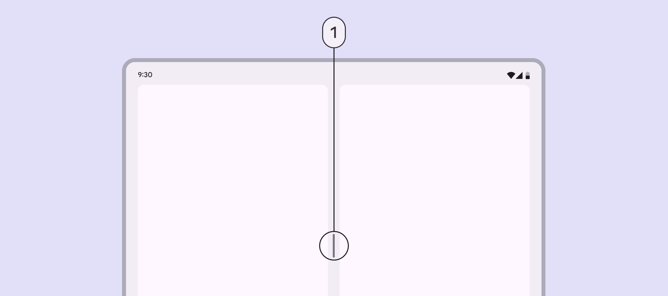 在雙面板佈局中,拖動手柄放置在面板之間的間隔區域。