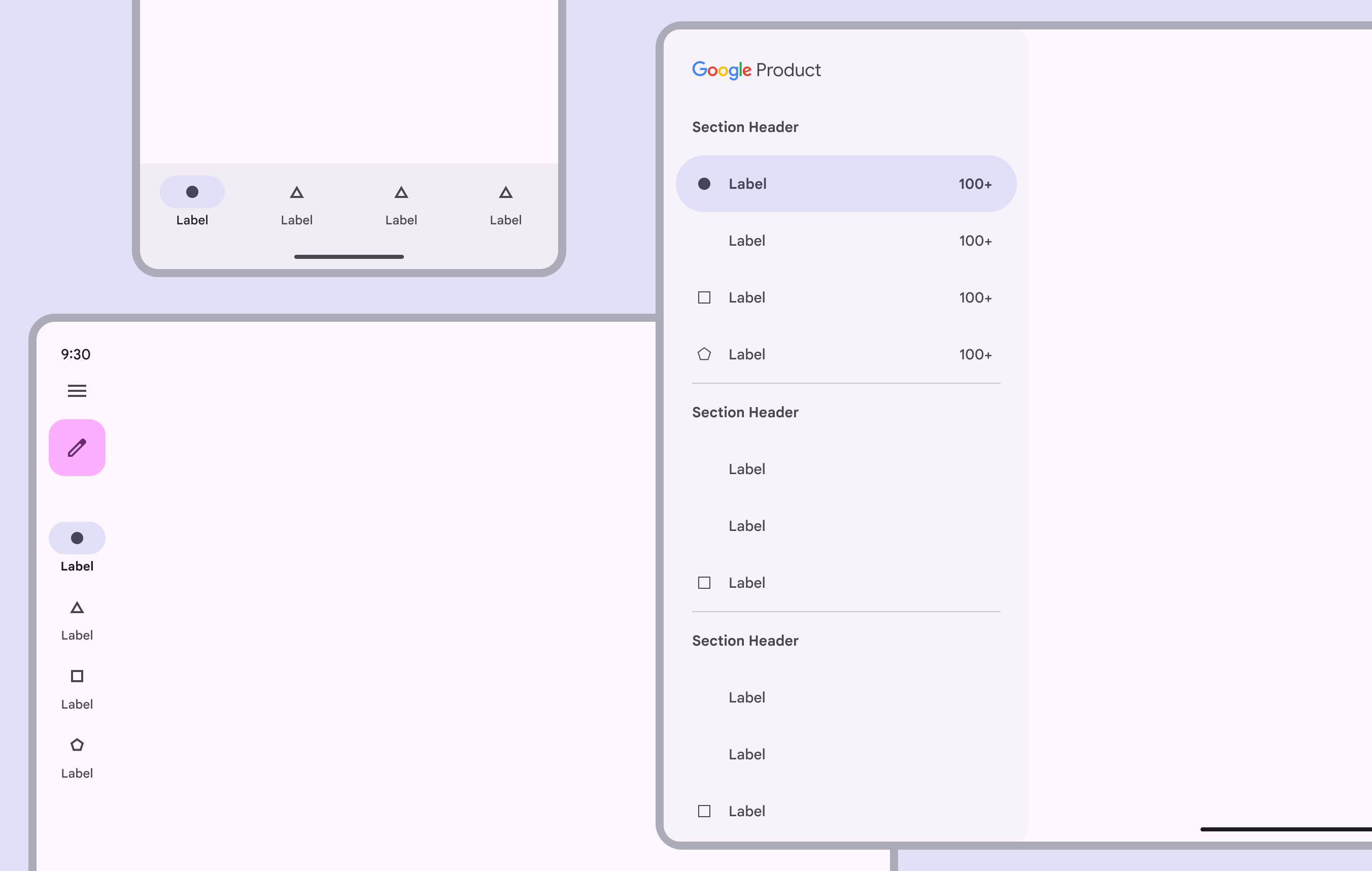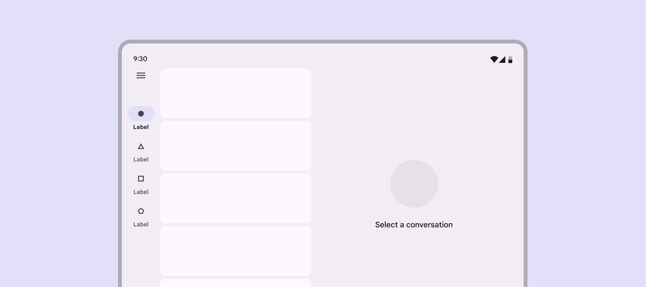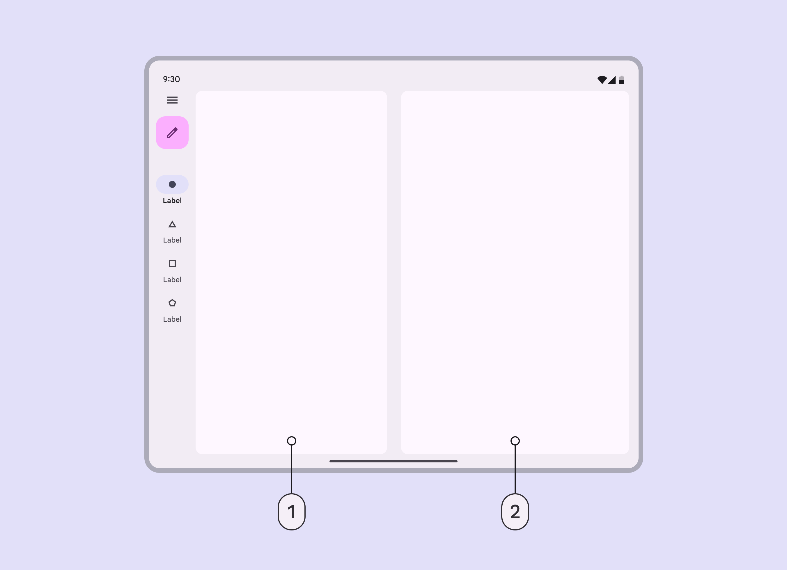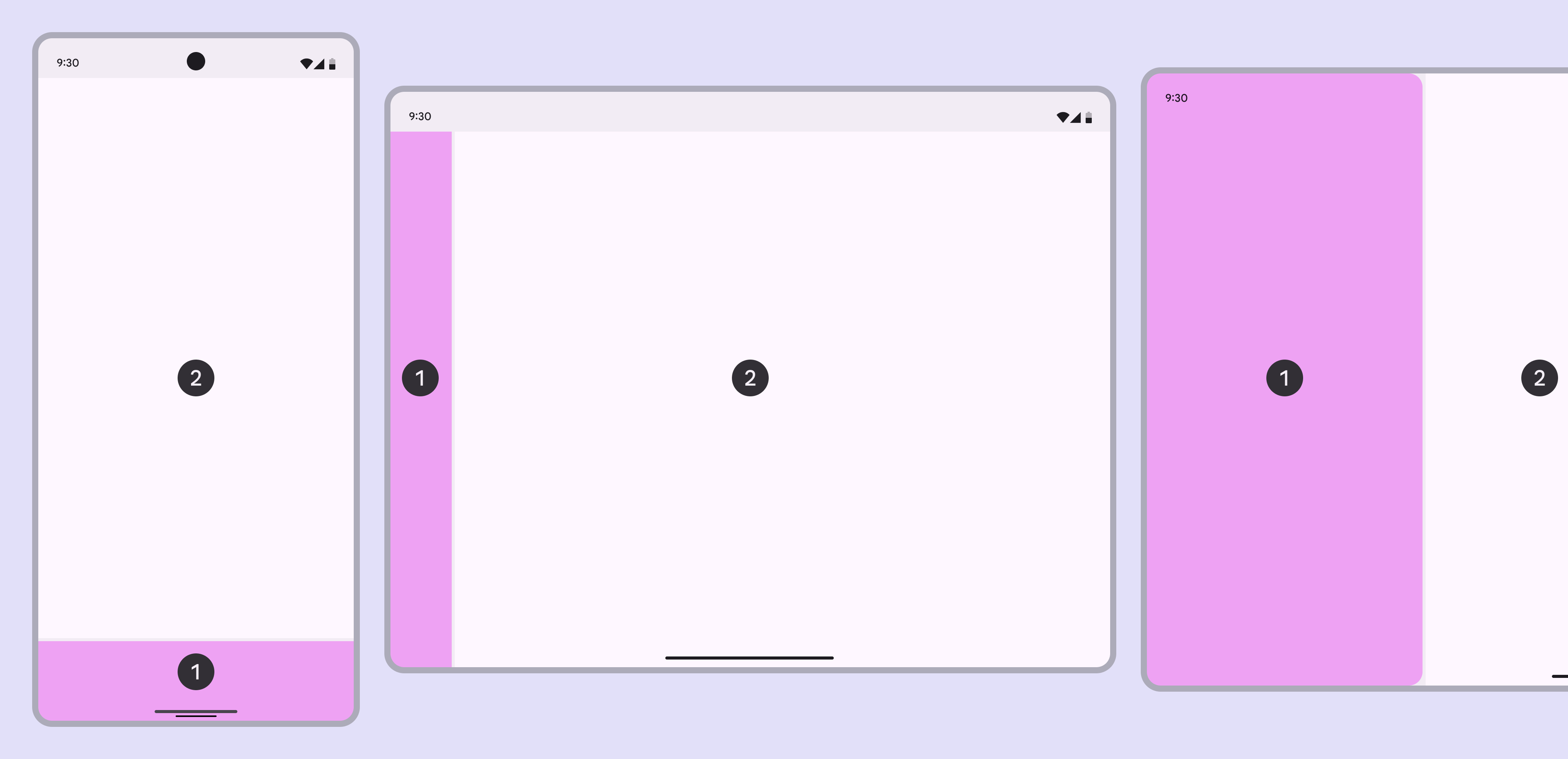 - 這些窗格會根據視窗尺寸類別和使用者的語言設定動態調整。對於從右到左(RTL)的語言,導航元件將位於右側。