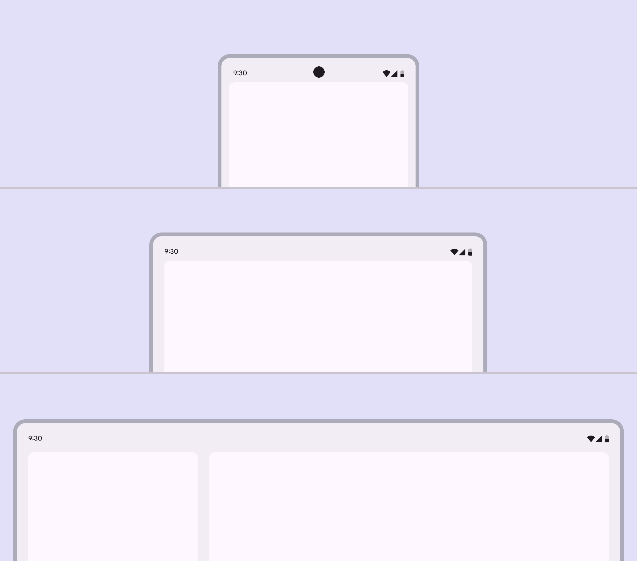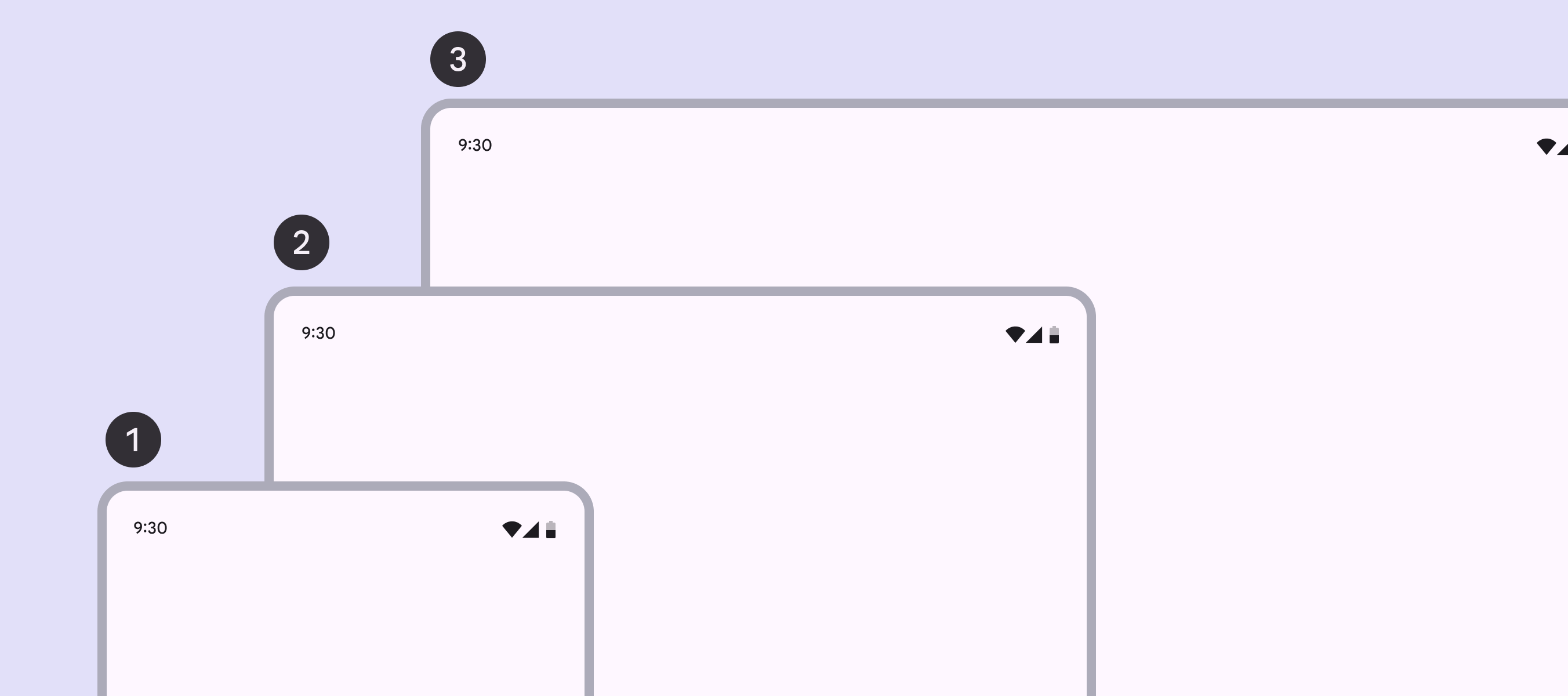 視窗尺寸類別是佈局調整的關鍵斷點,決定了 UI 如何適應不同裝置的空間、使用習慣和人體工程學。所有裝置可歸入以下三類之一: