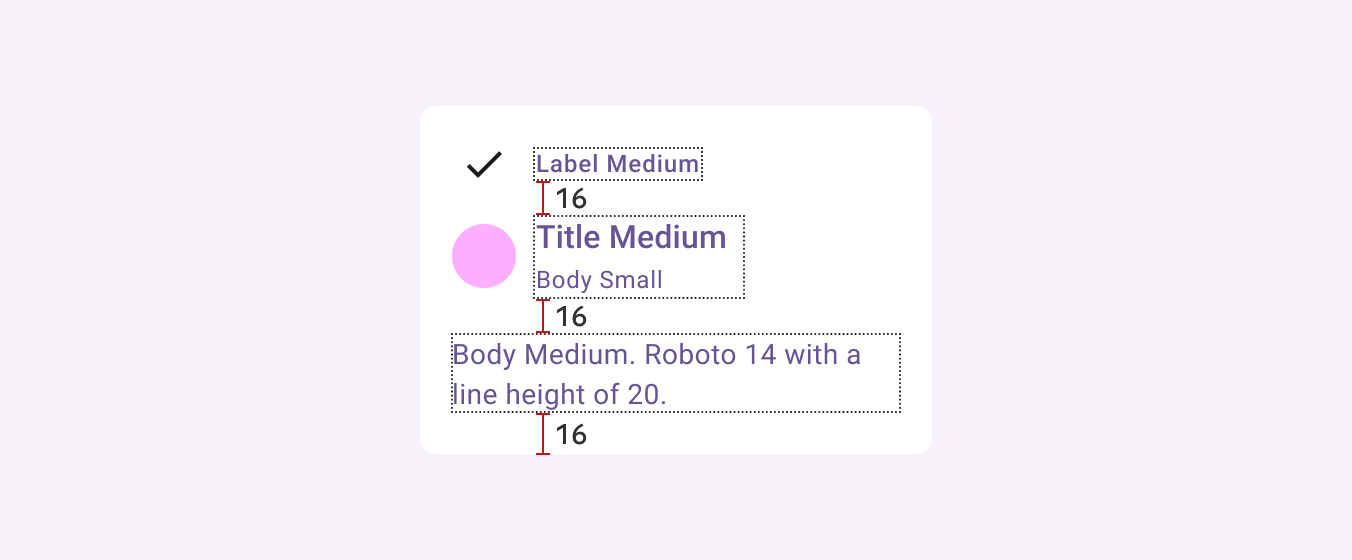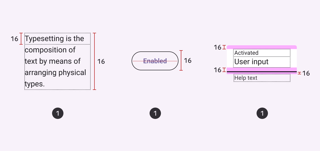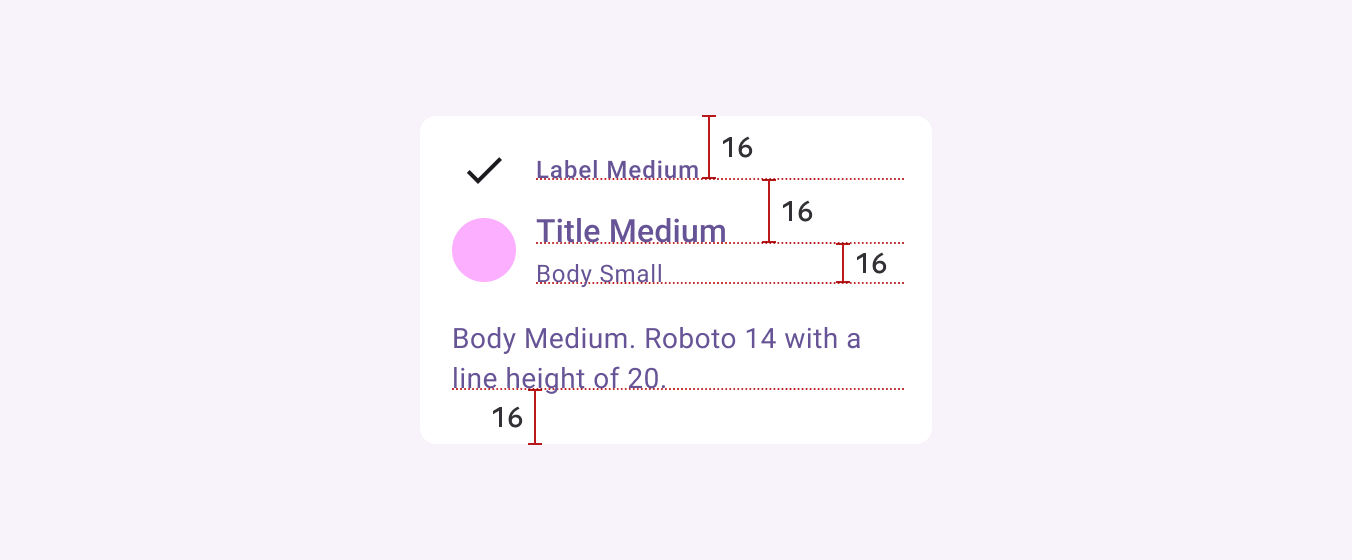 行高是指文字行之間的間距,它與字型大小直接相關。Material Design 的排版系統針對不同用途最佳化了行高。