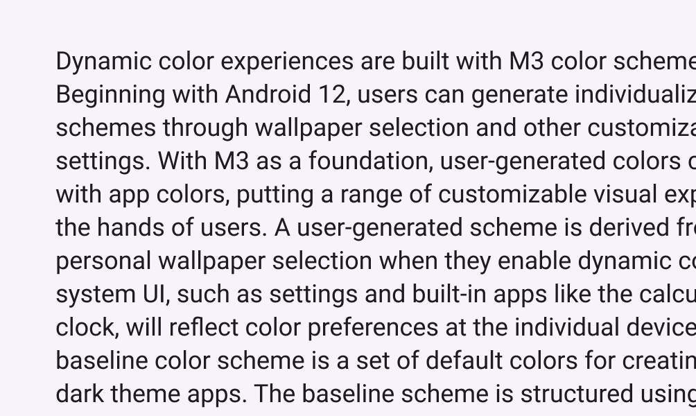 正文樣式適用於長段落文字。Roboto Flex 具有光學尺寸調整功能,能針對小字號和長文字最佳化可讀性,提供更多樣式選擇。正文應避免使用裝飾性或富有表現力的字型,因為這類字型在小字號下往往難以閱讀。