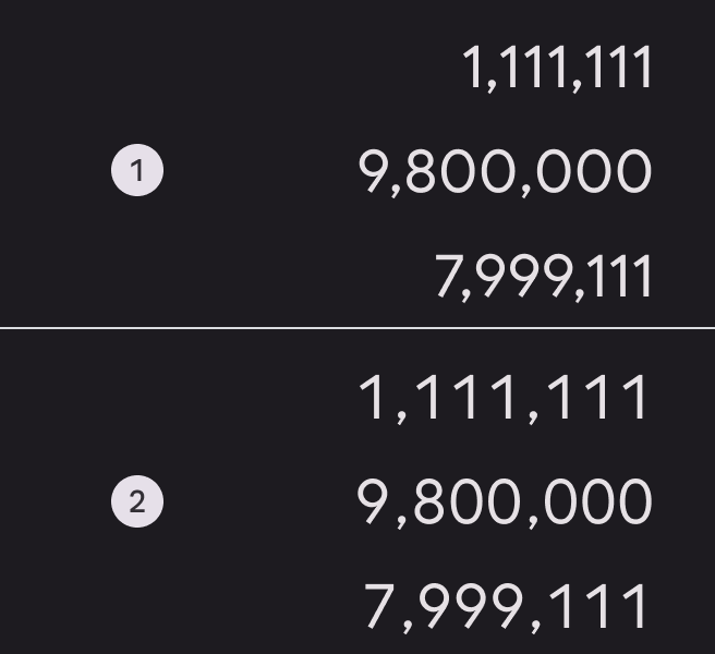 建議在表格或資料頻繁變化的場景(如時鐘、統計資料)中,使用等寬數字(monospaced numbers),而不是比例數字(proportional numbers),以確保資料列對齊,方便快速瀏覽。