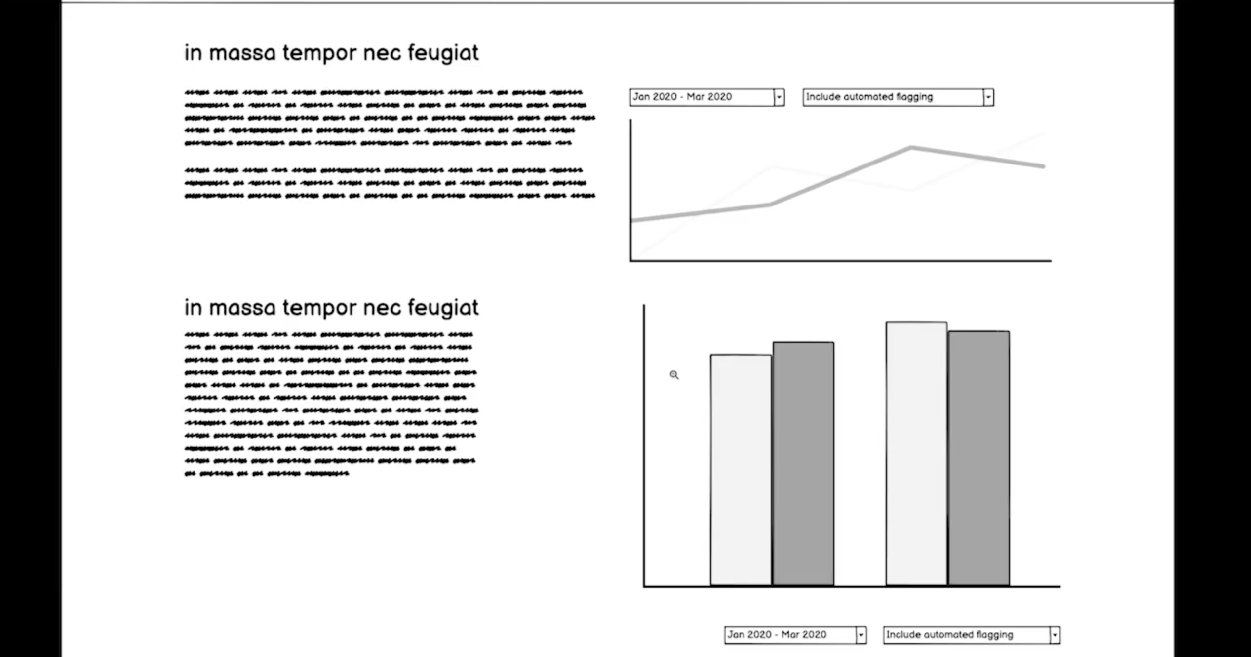 線框圖的繪製可以是手繪,也可以在電腦上進行。比如在Google的“透明度報告”網頁中,透過簡單的線框圖就可以清楚表達頁面的結構。這些草圖能幫助設計師向關鍵利益相關者(對產品結果有業務興趣的人)傳達設計意圖,從而獲得支援。