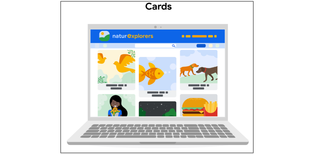 矩形的內容塊,用於展示單一主題的資訊與互動動作。新聞縮圖、商品展示、使用者資料、Pinterest、交友應用等。緊湊、資訊集中,適合使用者快速瀏覽。