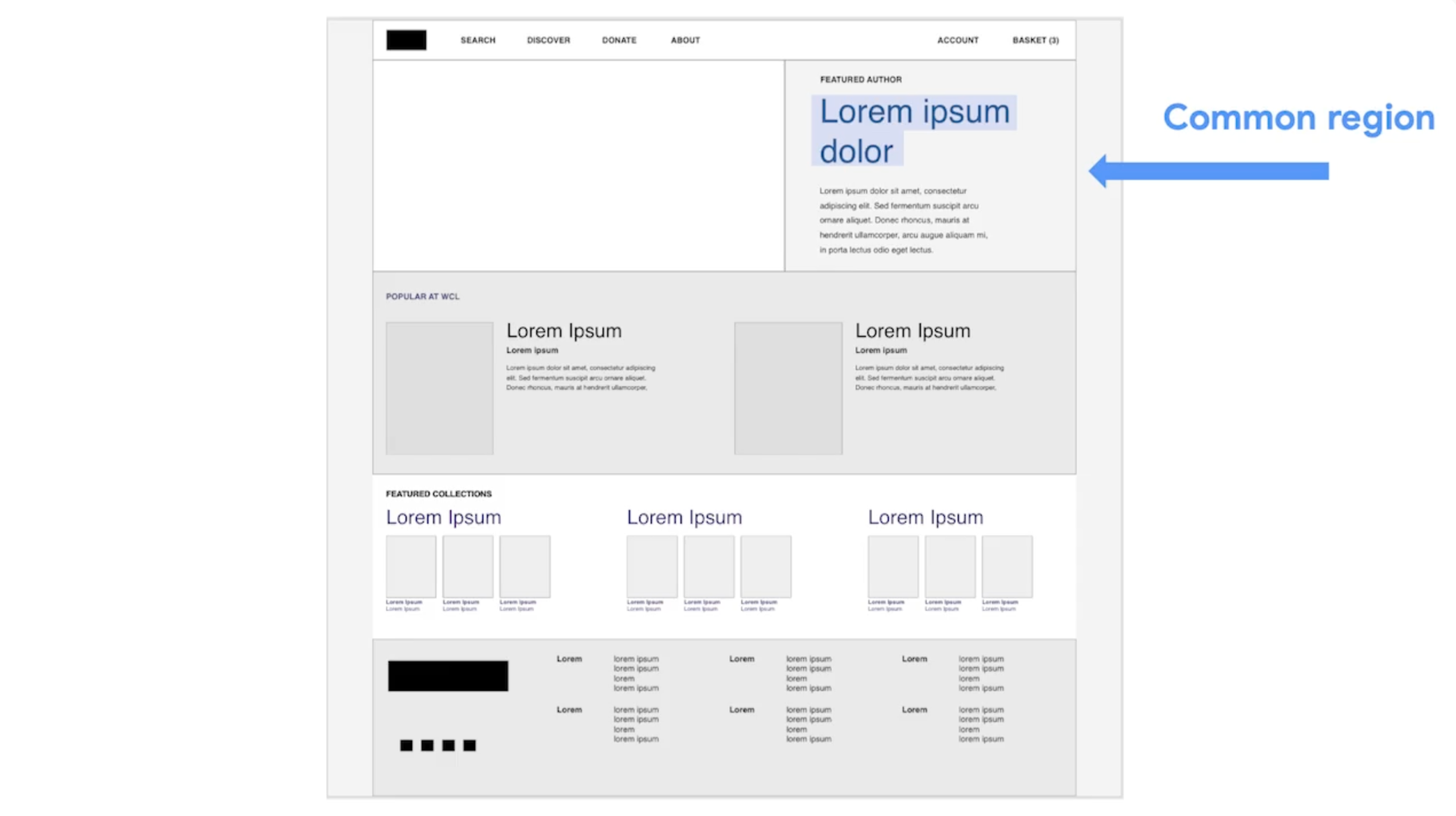在“Featured Collections(特色收藏)”區塊中,有兩組三個並排矩形:第一組三個矩形之間間距小,顯示為同一組圖書集合。第二組與第一組之間留有較大間距,表示是不同集合。