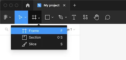 - 選擇左上角的“Frame 工具”或使用快捷鍵