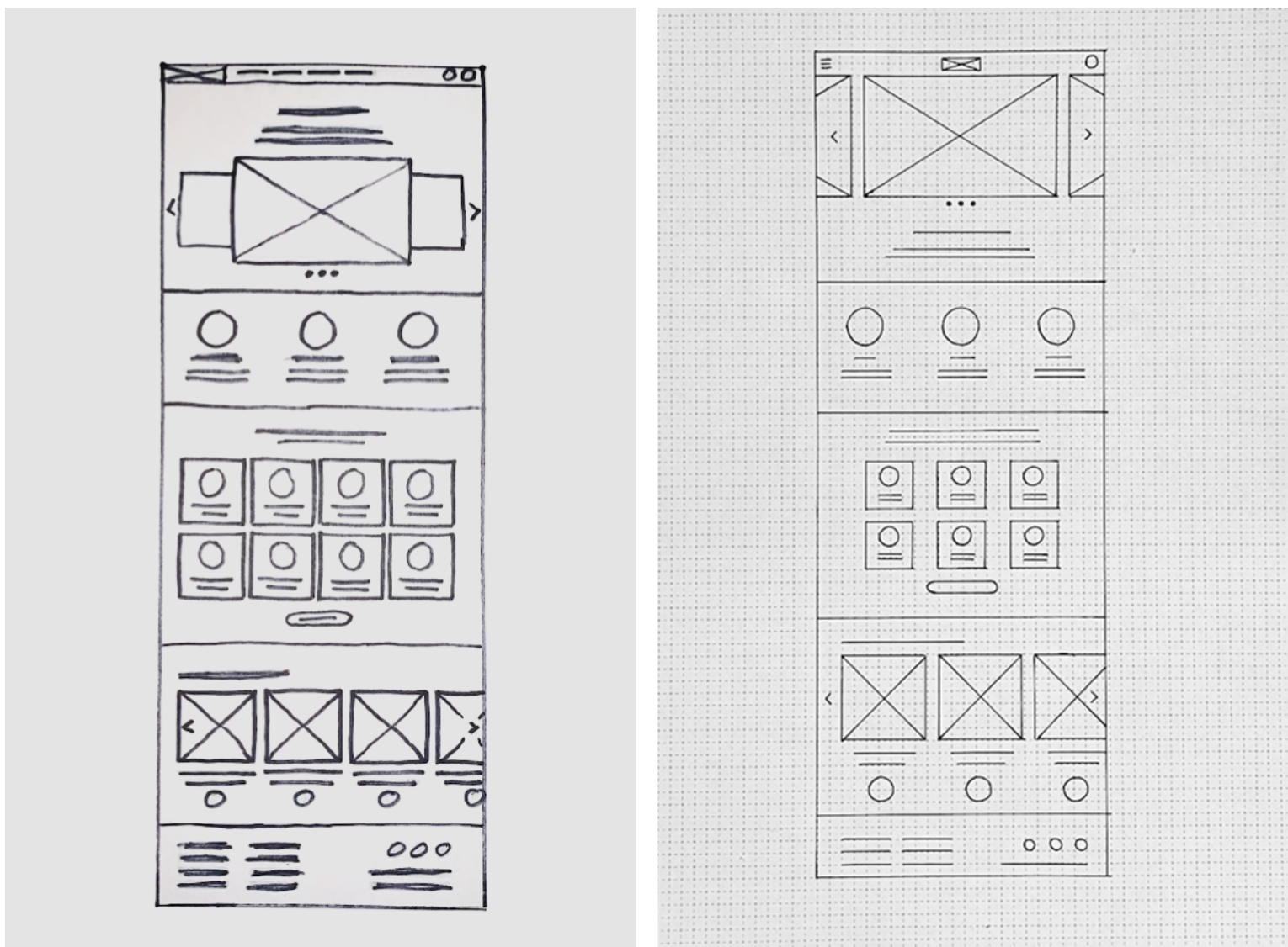 - 繪製多個版本:至少繪製 4 個不同的首頁線框圖,嘗試不同的頁面佈局方式。常用的線框圖符號包括: