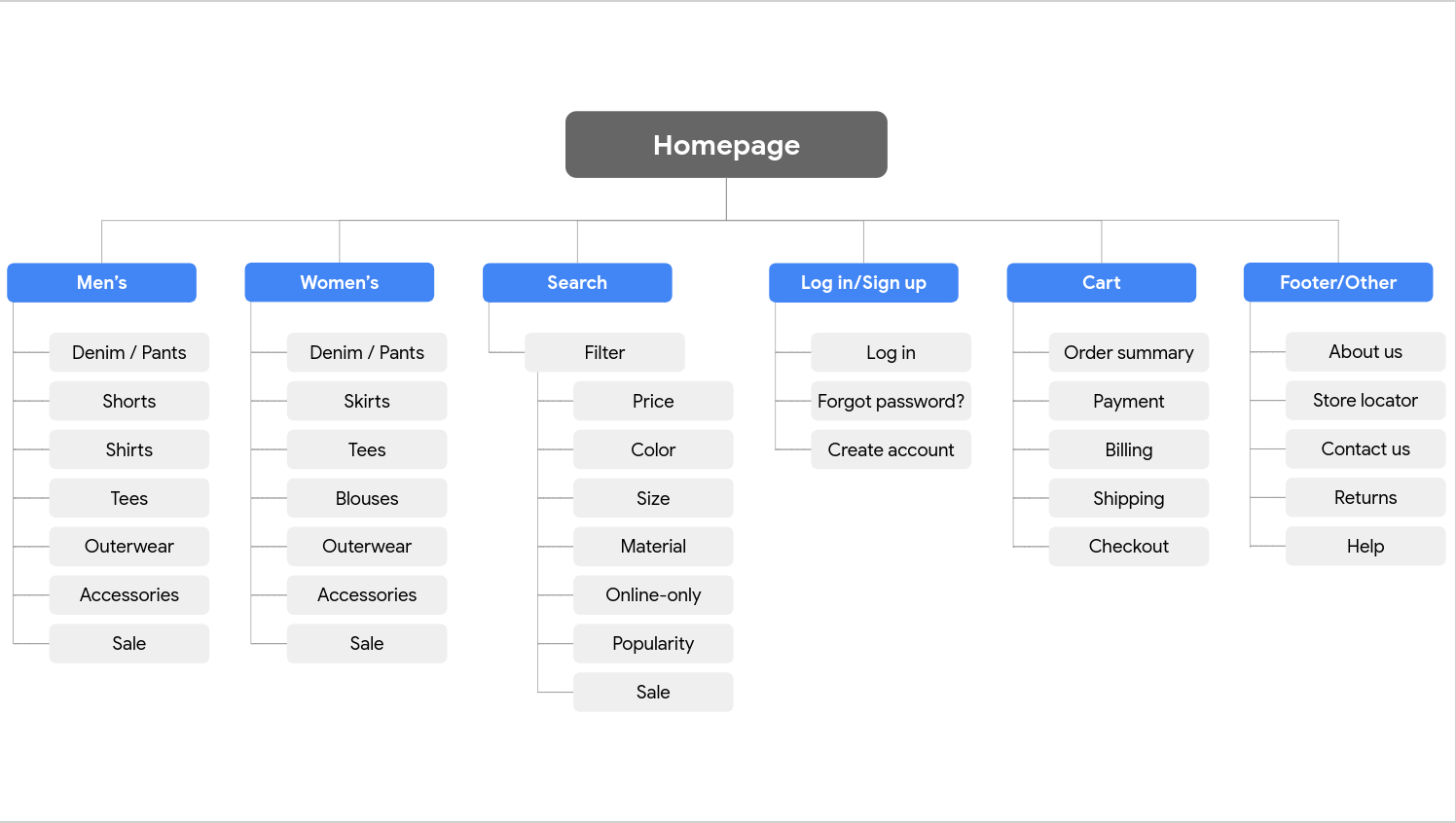 - 參考網站地圖:根據之前繪製的網站地圖,確定首頁需要包含哪些內容(如導航、分類、搜尋、登入、購物車等)。