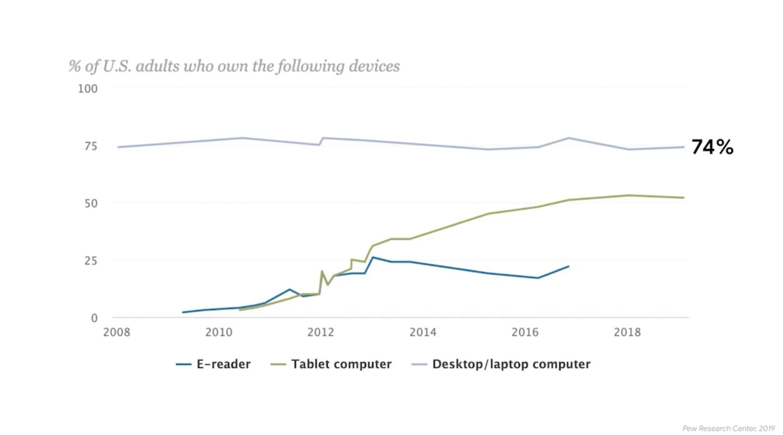 - 74% 的美國成年人擁有桌上型電腦或膝上型電腦;