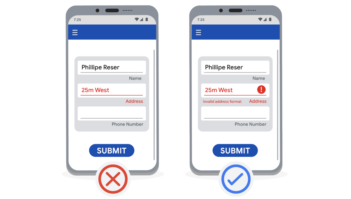 舉例:在表單中標記錯誤項時,不要只用紅色字型提示,而應加上紅色感嘆號圖示,讓更多使用者能識別到問題。