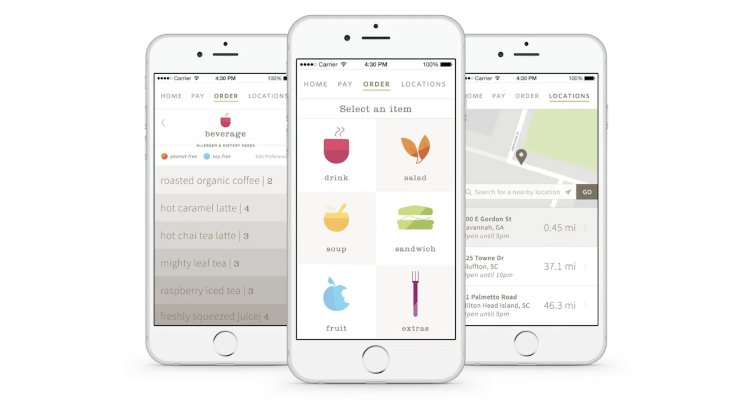 Lucere:虛構的外賣沙拉與三明治店,mockup中運用了漸變色、地圖、圖示和不同文字樣式。