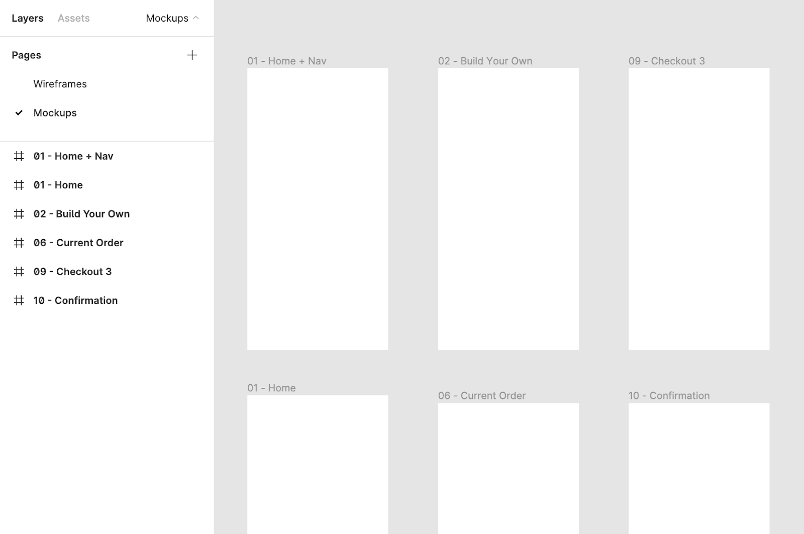 - 將一個專案組織為兩個頁面:一個放 wireframes,一個放 mockups;畫框內各自放入相應的介面設計。