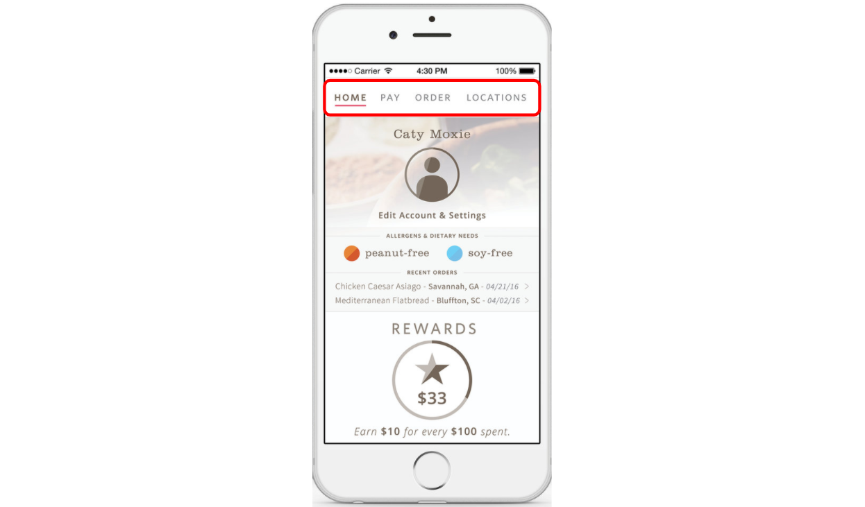 例子:主頁、郵箱、搜尋、設定。